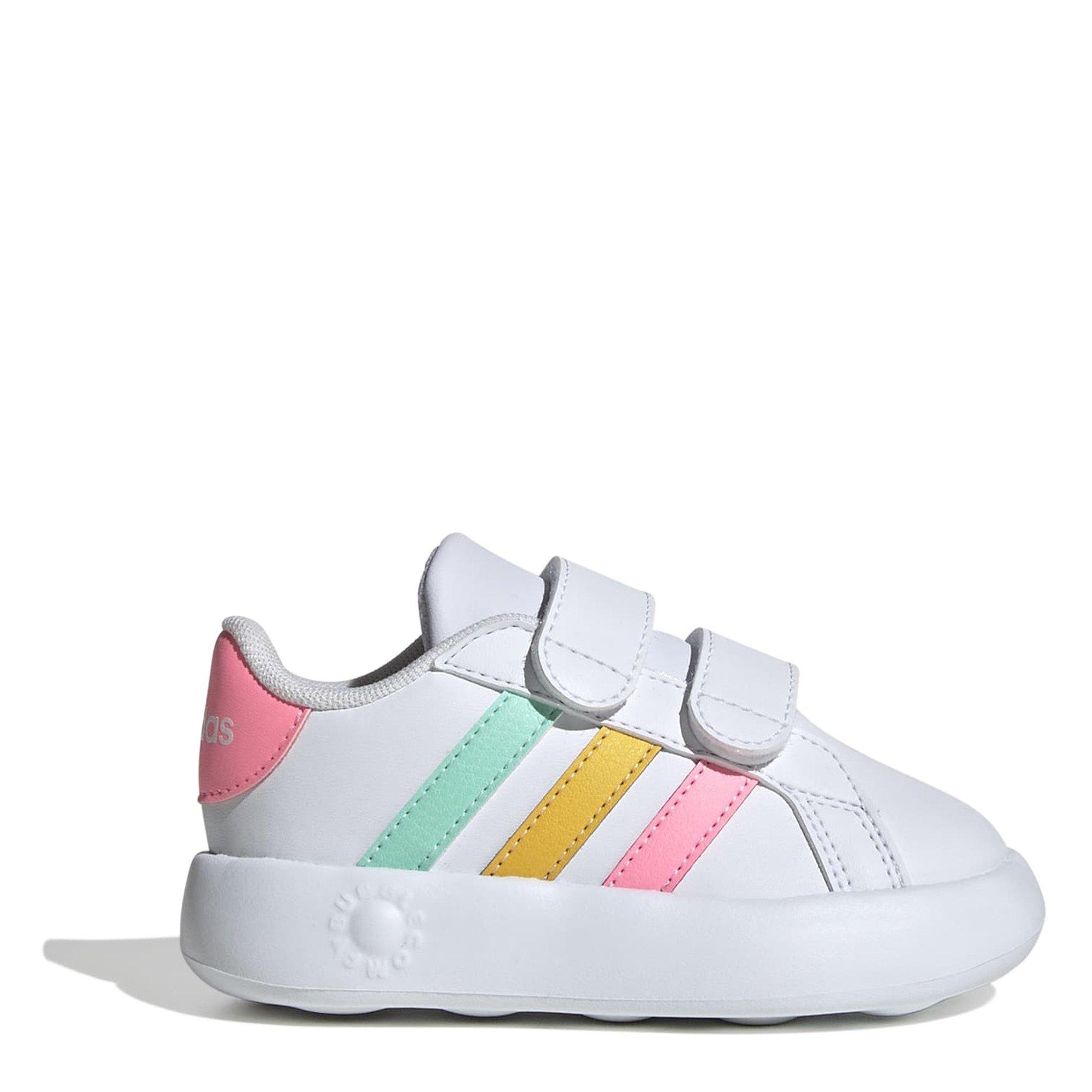 Get your little athlete ready for their active adventures with the adidas' Grand Court 2.0 Shoes. Crafted with a synthetic leather upper and a textile lining, these shoes offer durability and comfort that can keep up with even the most energetic little ones. Made with at least 20% recycled materials, it reflects adidas' commitment to sustainability. The hook-and-loop closure ensures a secure fit, making it easy to get these shoes on and off in a flash.