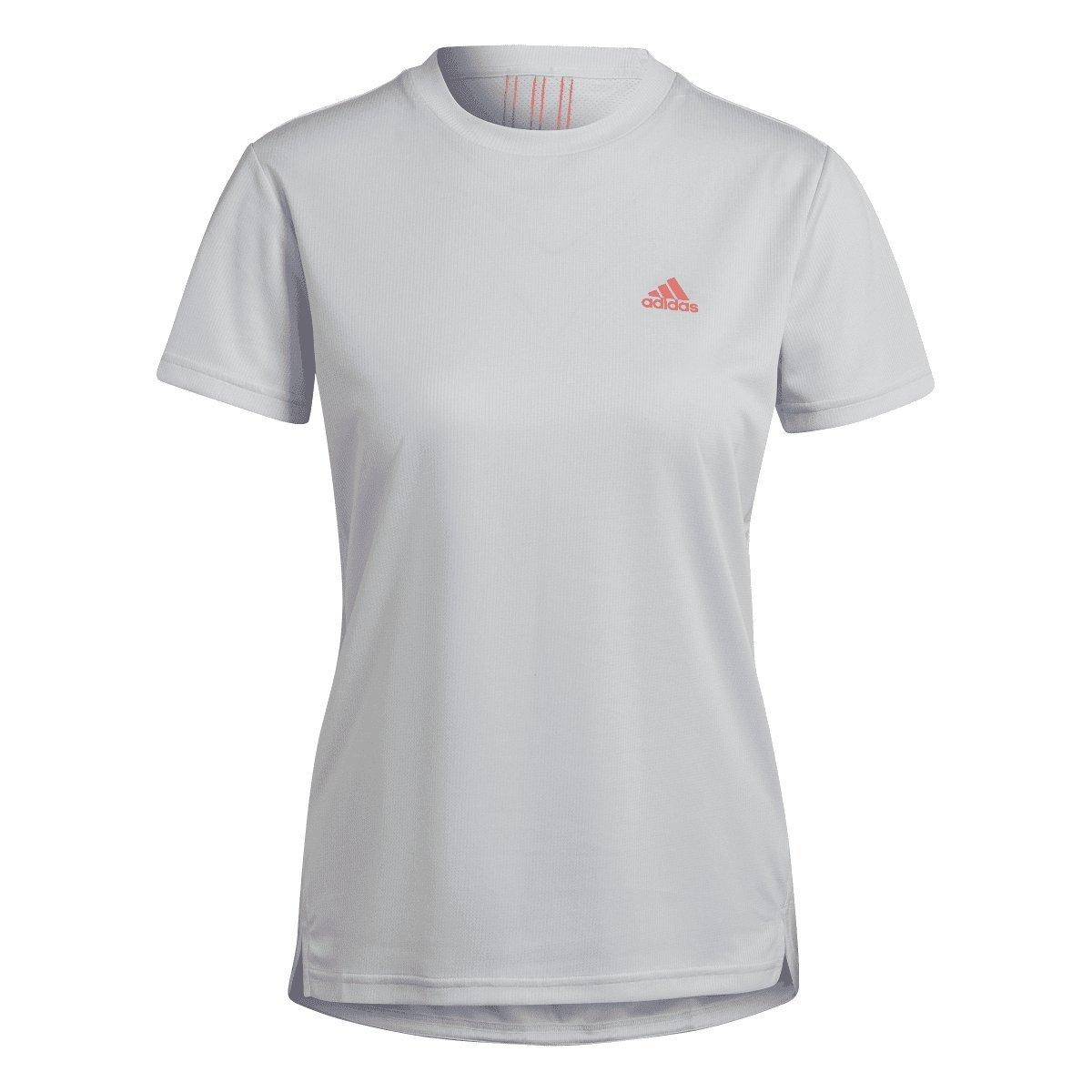 Womens adidas AEROREADY Designed 2 Move 3-Stripes Sport T-Shirt in dash grey - semi turbo.