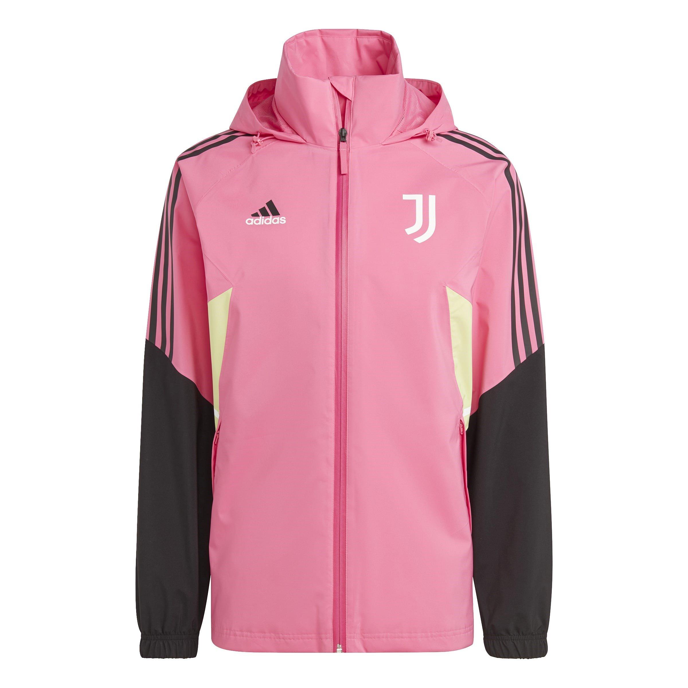 The adidas Juventus Rain Jacket delivers essential protection when weather threatens your game. RAIN.RDY technology shields against downpours and gusting winds, while the practical design features a collar-concealed hood and elastic cuffs for unrestricted movement during training or matchday preparation.