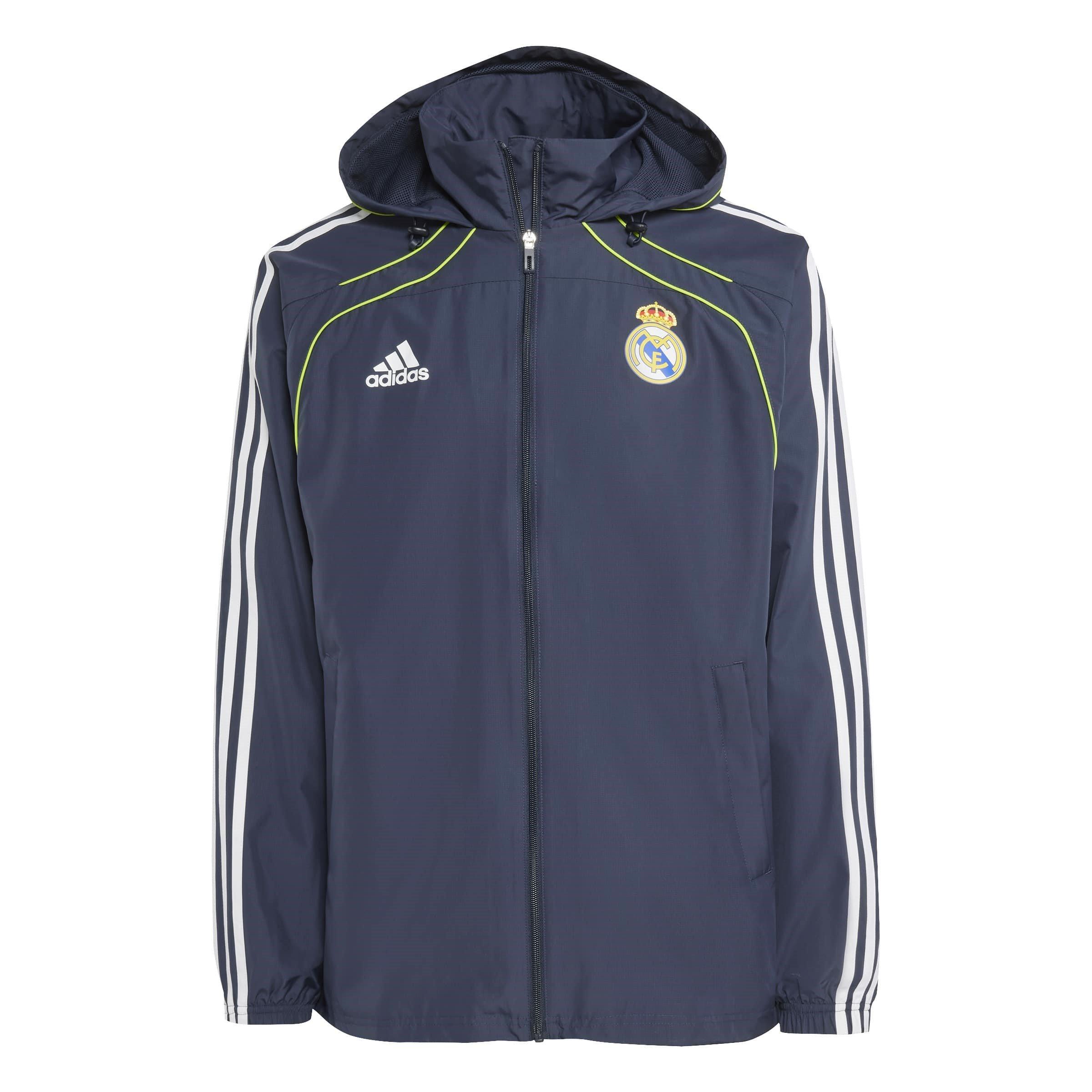 Show your allegiance to the Kings of Europe while staying protected from the elements with the official adidas Real Madrid Windbreaker 25/26. Constructed from a lightweight, durable ripstop polyester fabric, this windbreaker provides excellent protection from wind and light rain, making it ideal for transitional weather.