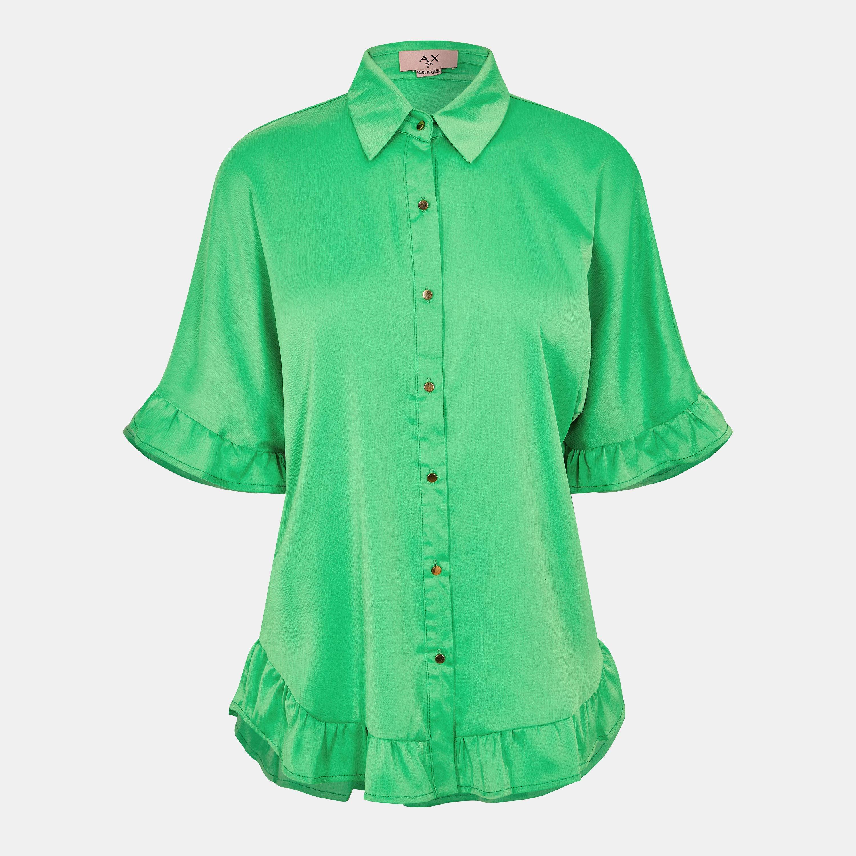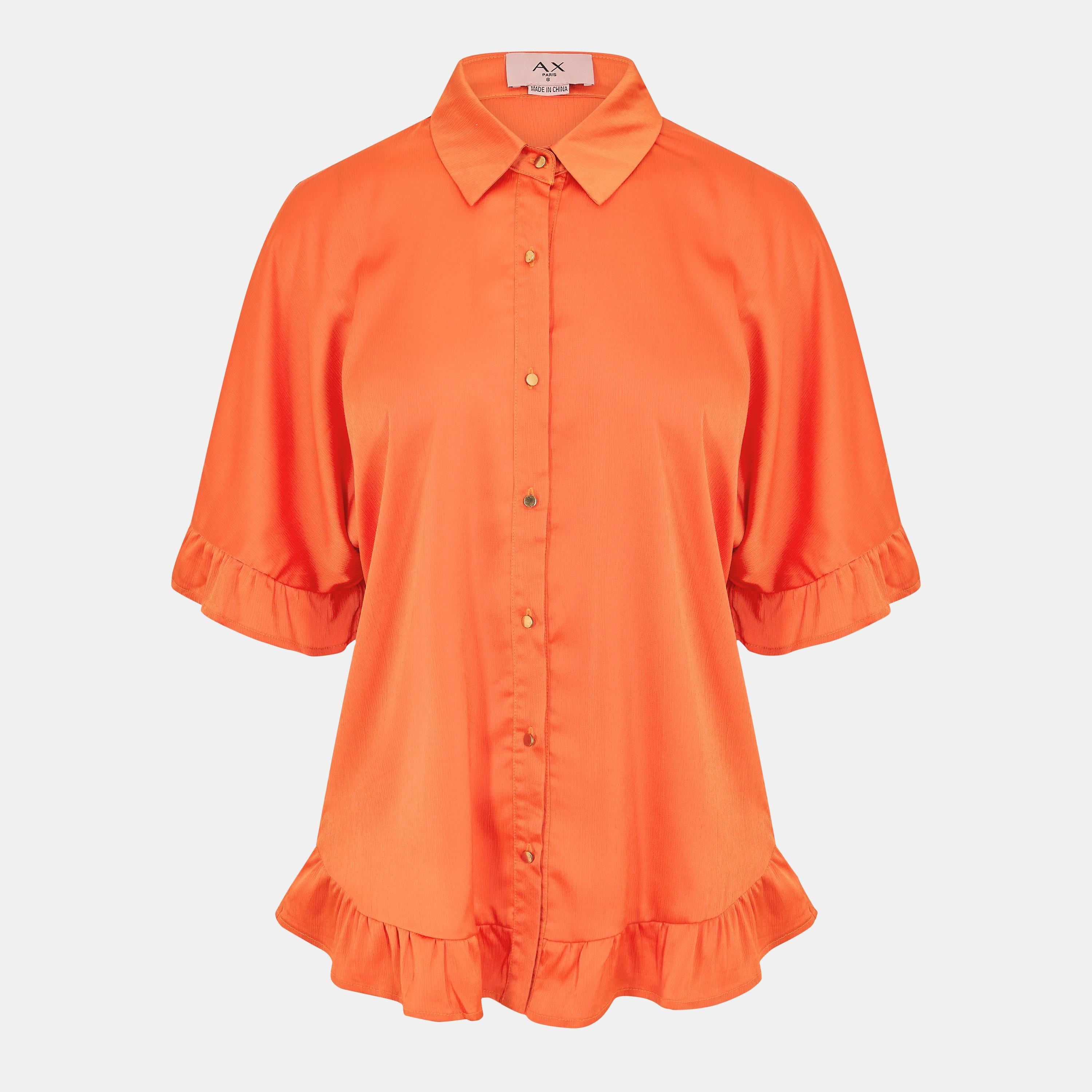 Our Frill Detail Gold Button Front Shirt is perfect for adding some colour to your wardrobe. Featuring a classic shirt collar, short sleeves with a frill detail, gold button front and frill hem. Pair with denim shorts, sandals and a cute tote bag for the perfect summer day look.
