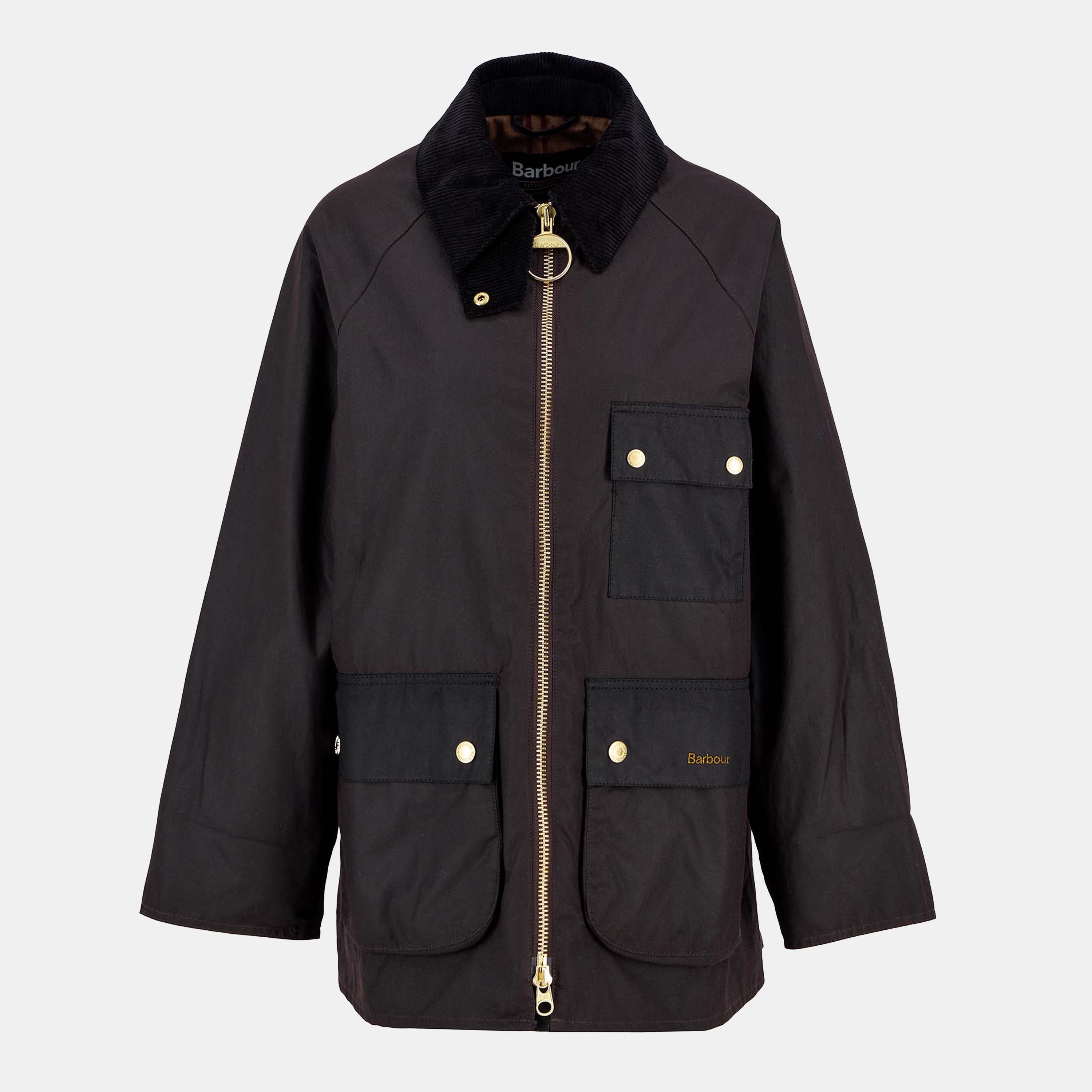Keep the elements at bay with the Barbour Women's Luella Hooded Long Sleeve Zip Wax Jacket. Featuring an oversized cord collar and magnified ring-pull zipper, this piece offers countryside practicality with gold-tone hardware accents and a three-pocket profile for essential storage.