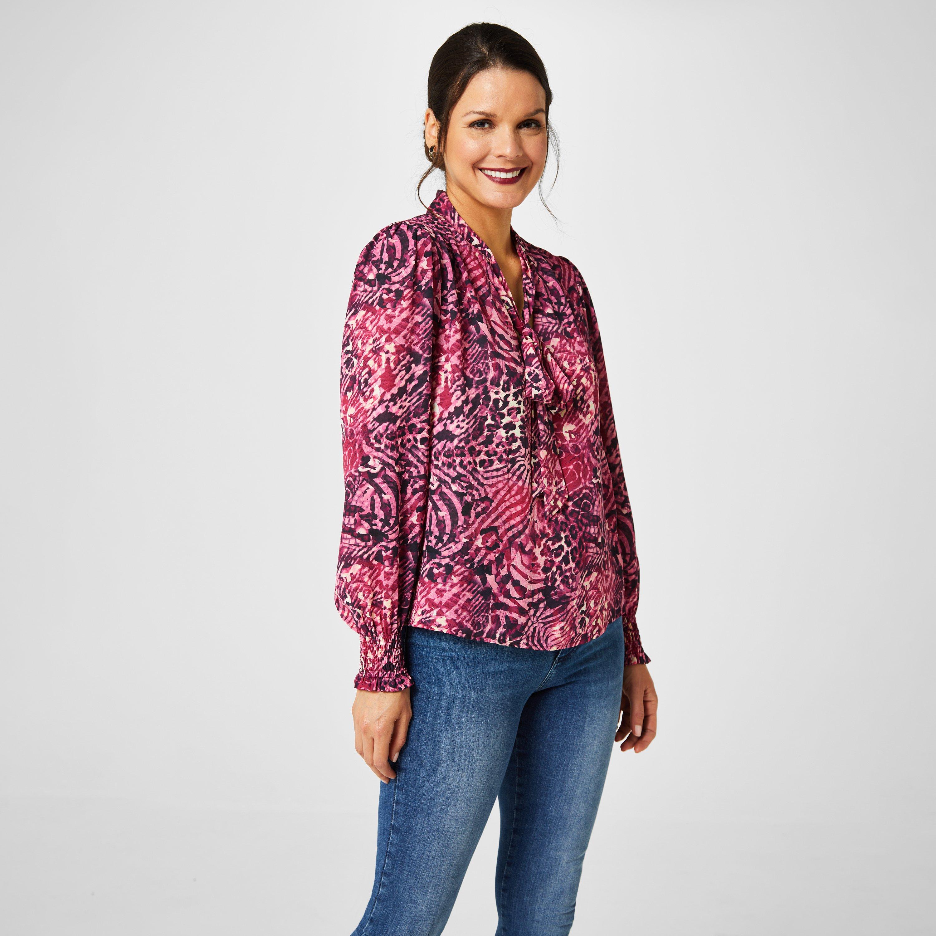 Available in multiple colours and bold prints, there is a style to suit everyone. The self-tie pussy bow fastening at the neck adds a touch of femininity, elevating this ladies' top to new heights.