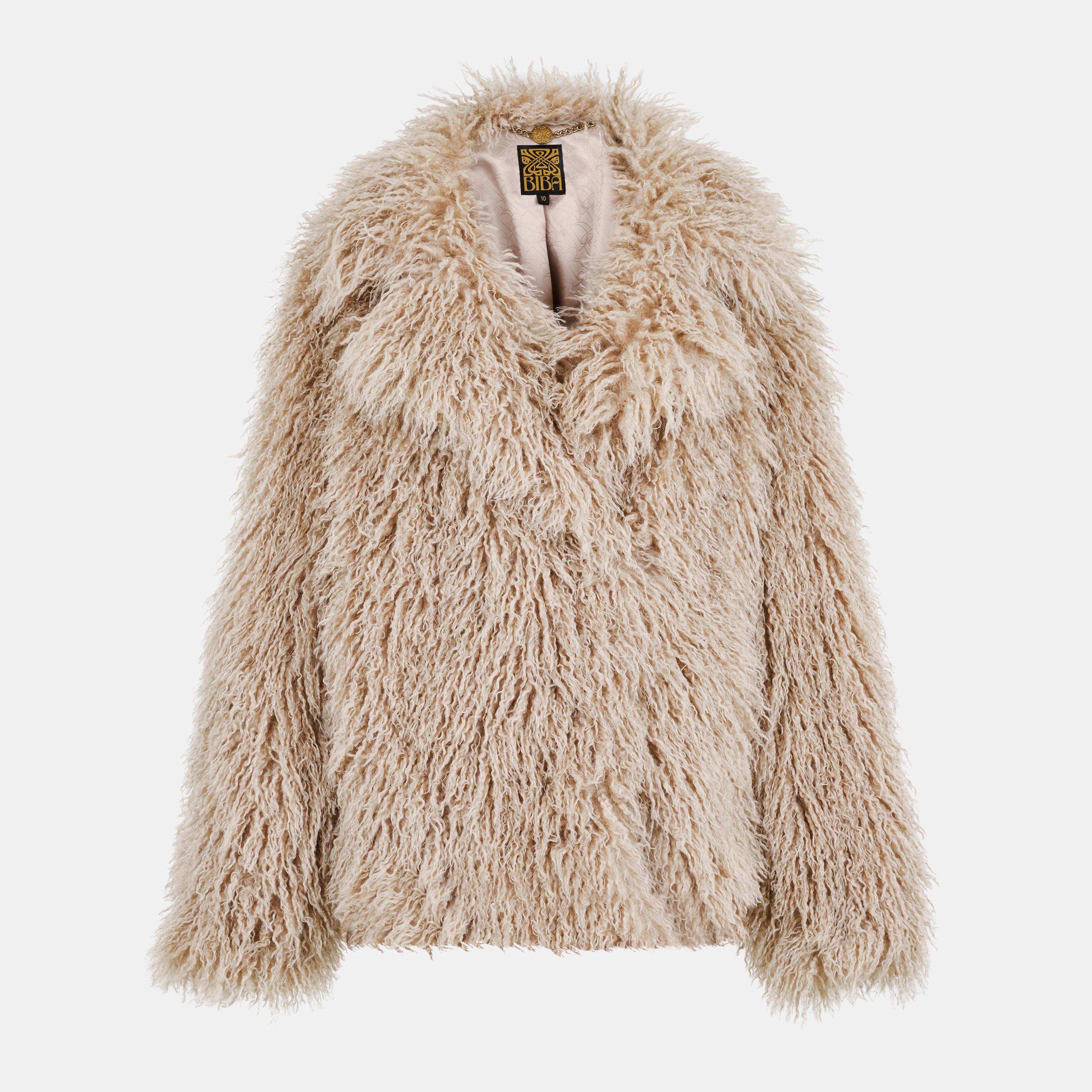Biba's Doodle Fur Oversized Teddy Coat offers winter warmth with a textured finish. The coat features a relaxed shape that fits easily over seasonal outfits while providing insulation and style.