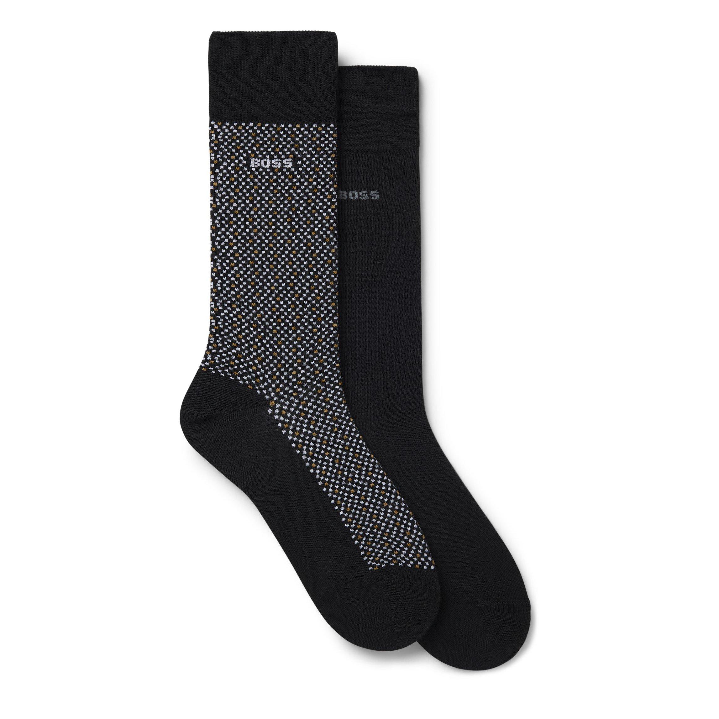 BOSS Men's Mini Cube Crew Socks are shaped for reliable everyday wear with a crew-height fit. The design features a mini cube pattern for a subtle textured look.