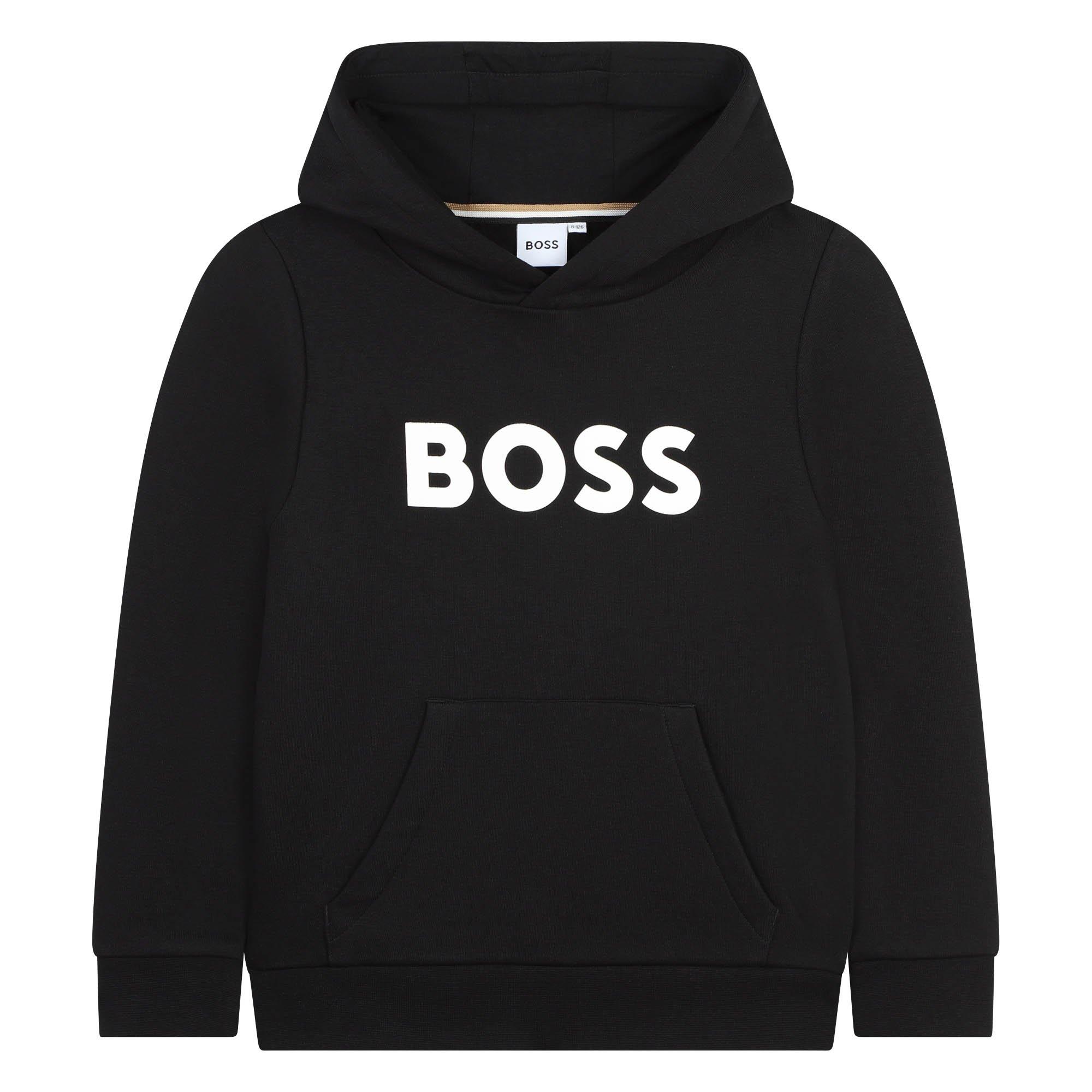 The BOSS Kids' Logo Pull Over Hoodie brings bold branding to a relaxed fit. Built with an overhead design and comfortable fabric, this piece works as an everyday layer with authentic BOSS character.