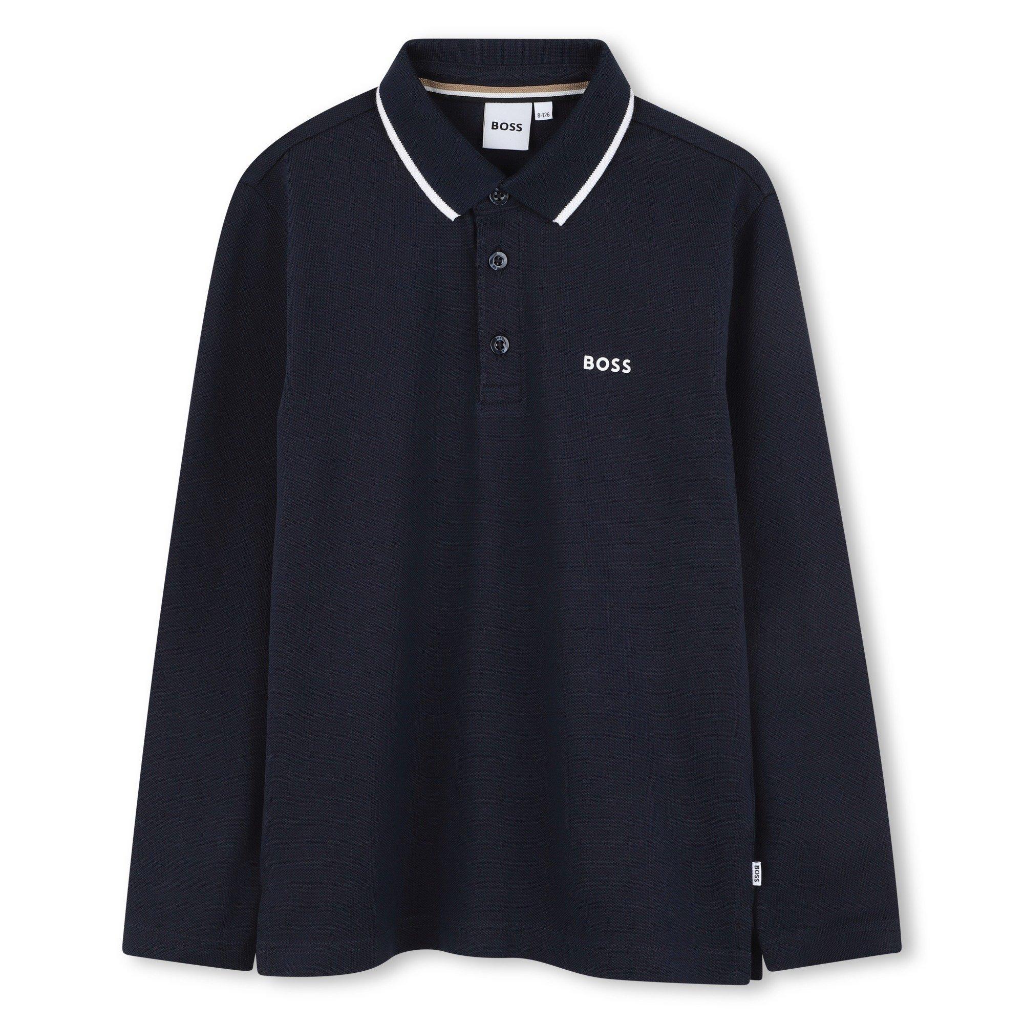 A classic polo with long sleeves for added coverage. This BOSS Kids' Long Sleeve Polo Shirt features a polo collar and extended sleeves, offering comfortable wearability whether layered or worn solo across the cooler months.