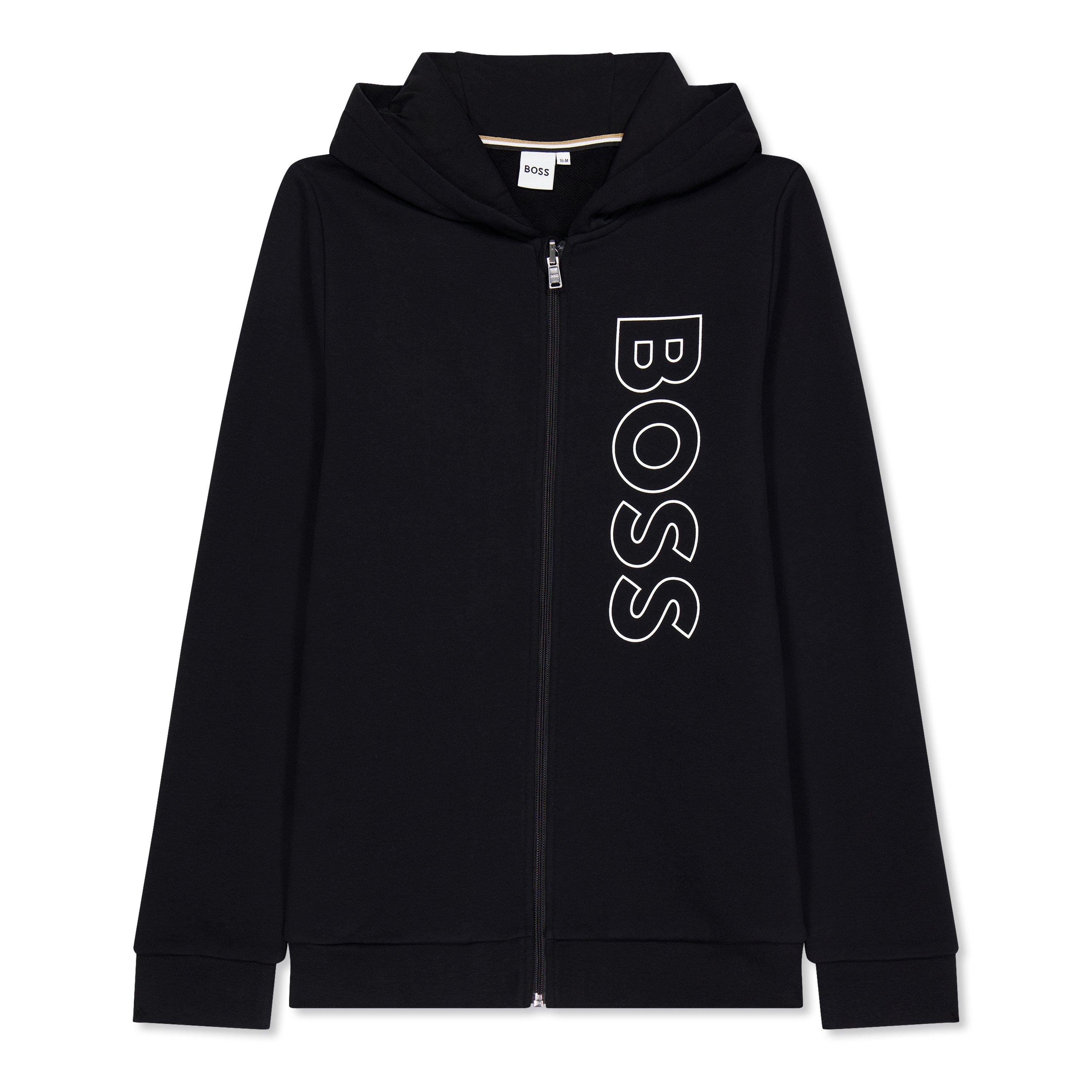 Improve everyday style with this BOSS Kids' Large Logo Full-Zip Hoodie. Designed for junior fashion enthusiasts, this comfortable sweatshirt features bold brand detailing and a practical full-zip design that adapts to changing temperatures while providing a contemporary athletic look.