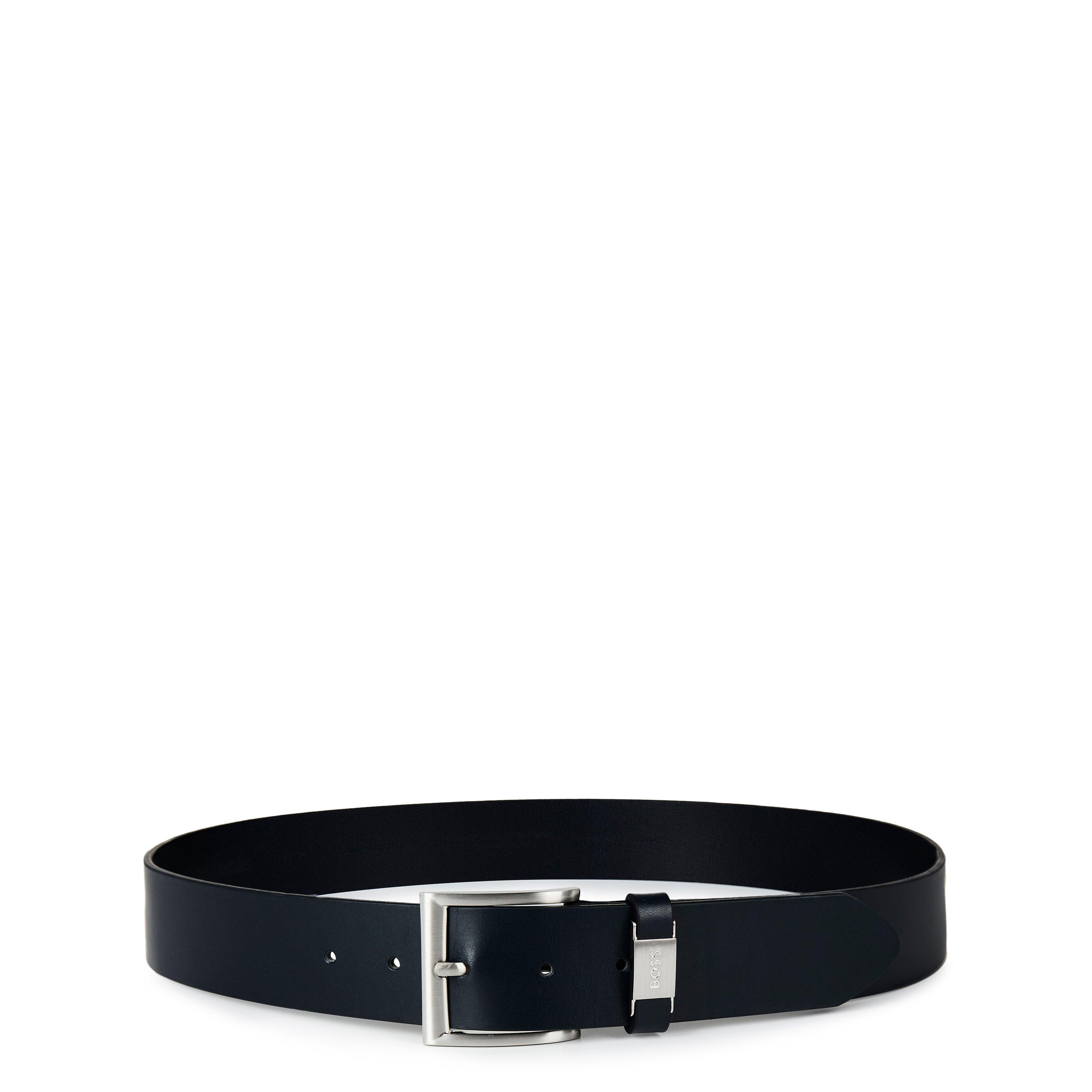 BOSS Men's Connio Leather Belt delivers classic fashion styling with functional detailing. The metal buckle featuring the BOSS logo anchors this accessory, made from quality leather with contemporary detailing that complements casual wear.