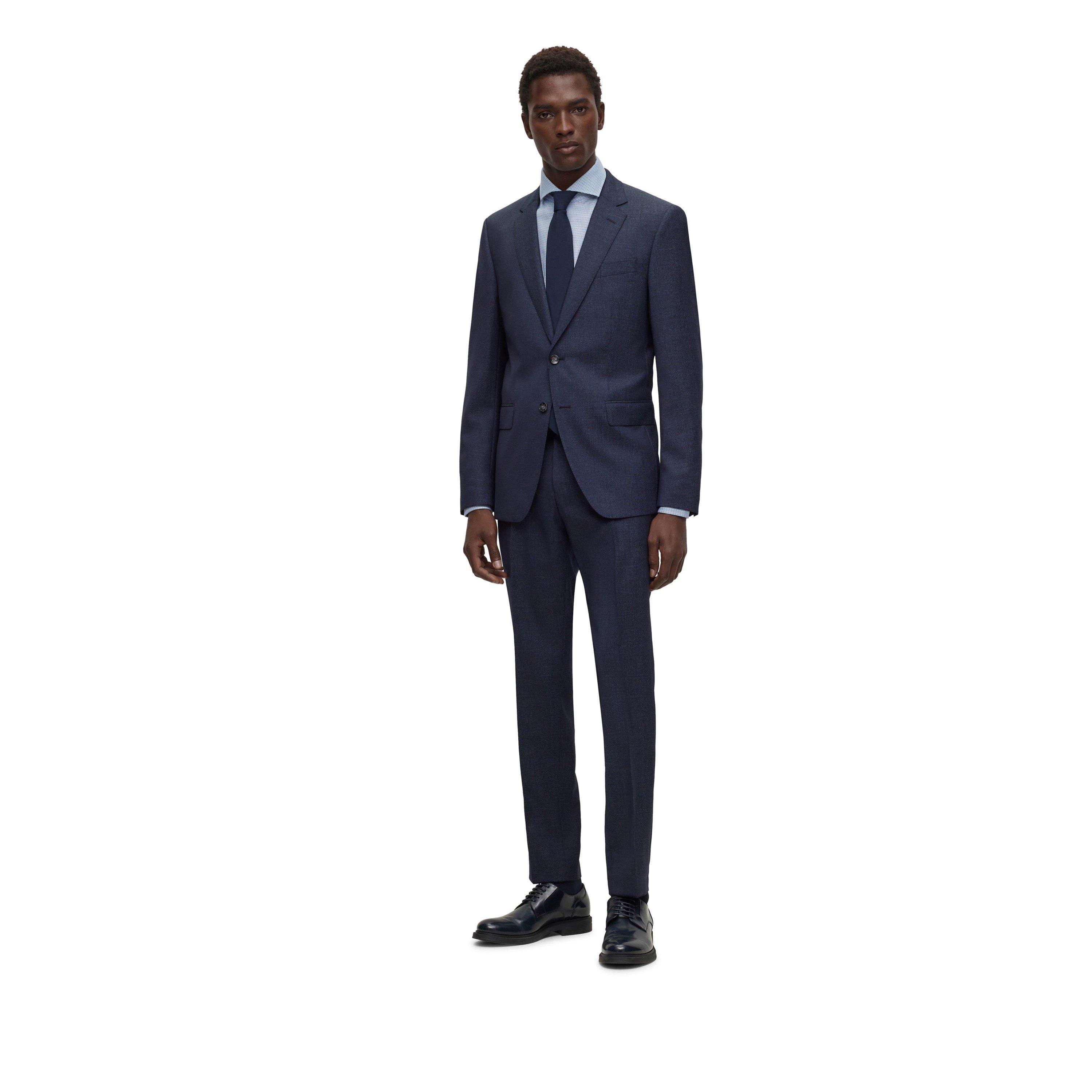 The BOSS Men's H Huge Suit offers clean, precise tailoring for the modern professional. With architectural lines and a structured design, this two-piece suit is suitable for business settings and special occasions.