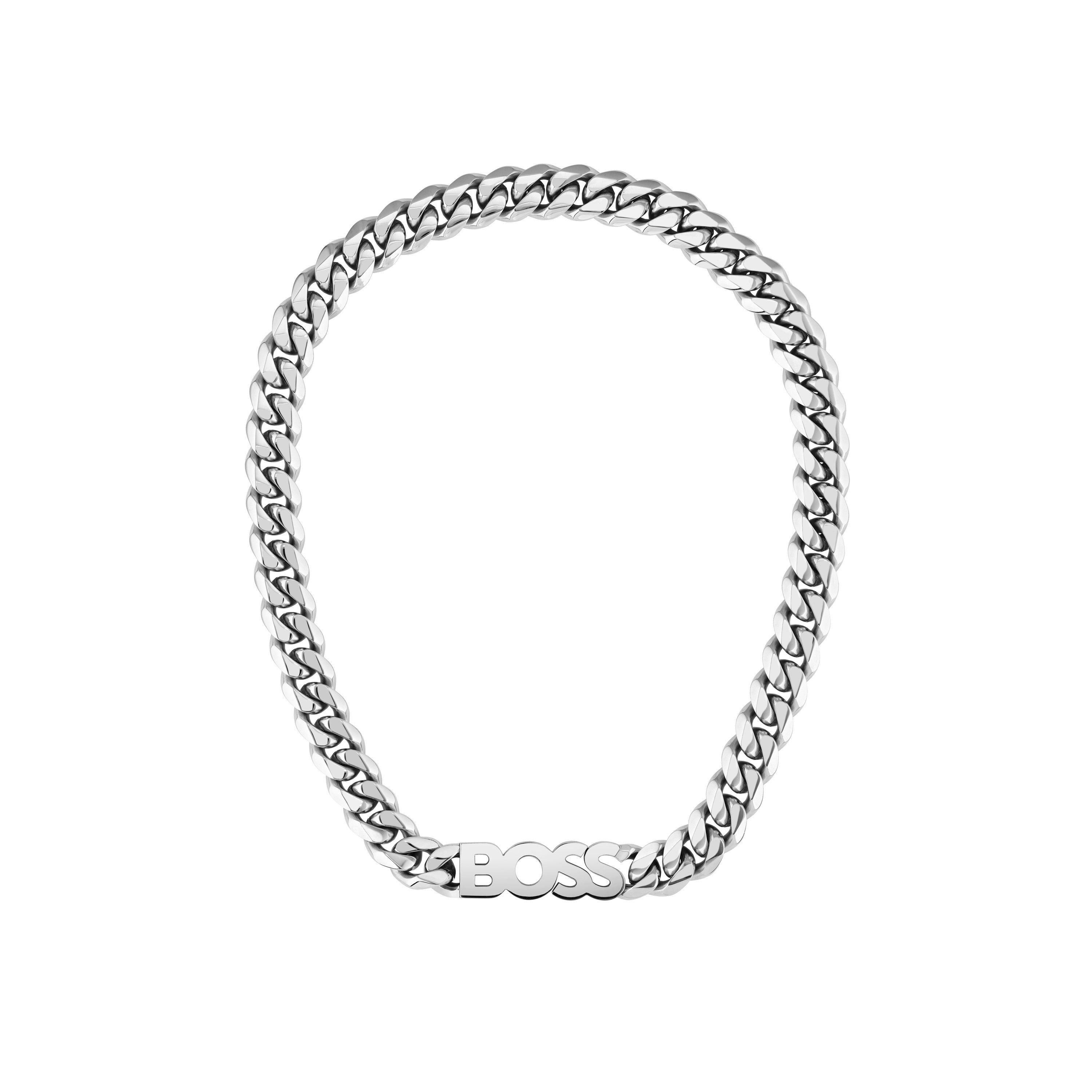 The BOSS Kassy Stainless Steel Chain Necklace brings a minimalist profile with a logo pendant. Its streamlined design pairs durability with subtle brand presence.