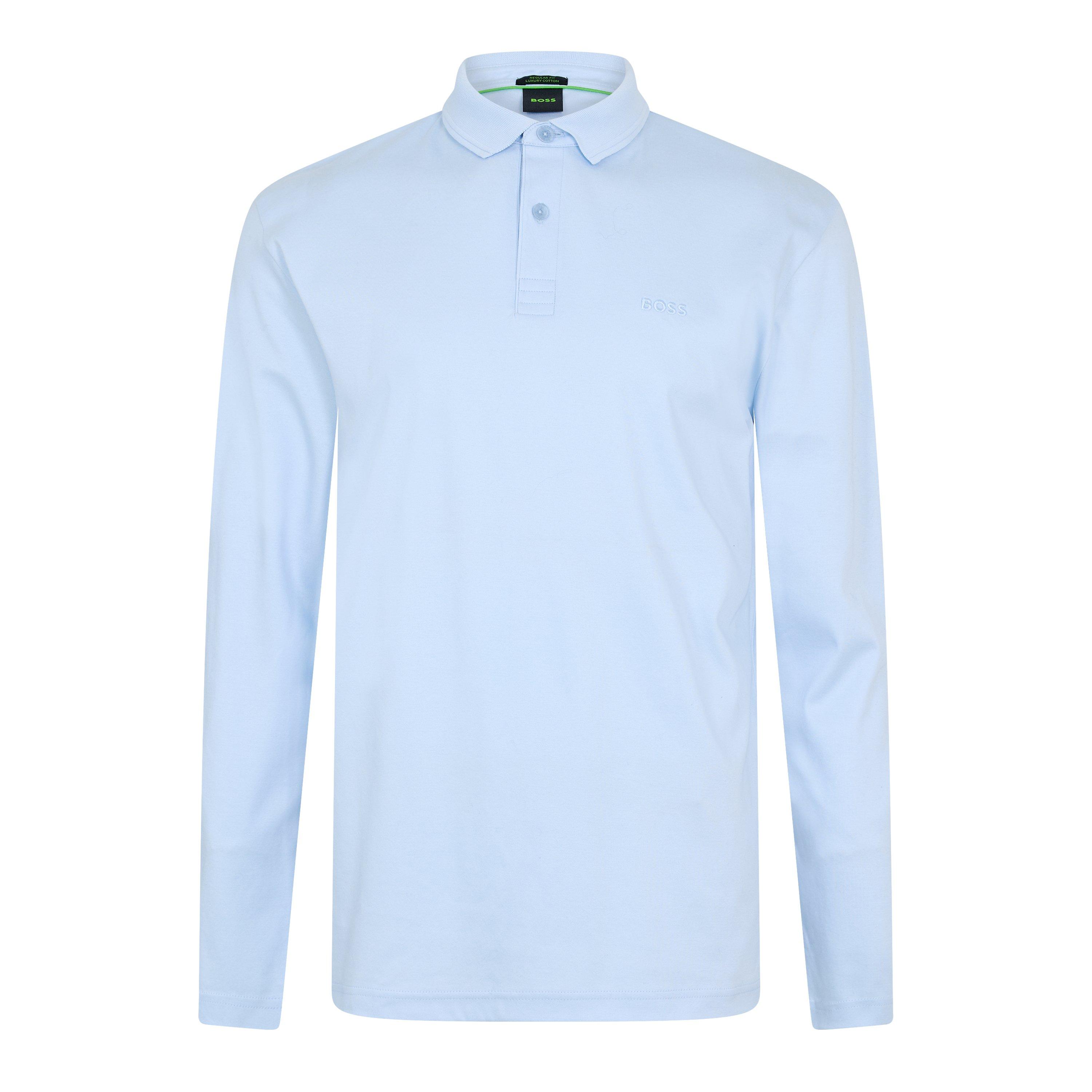 The BOSS Pirol Long-Sleeve Polo offers clean lines and subtle branding that bridge casual and smart-casual styles. This piece provides natural comfort and adaptability for everyday wear.