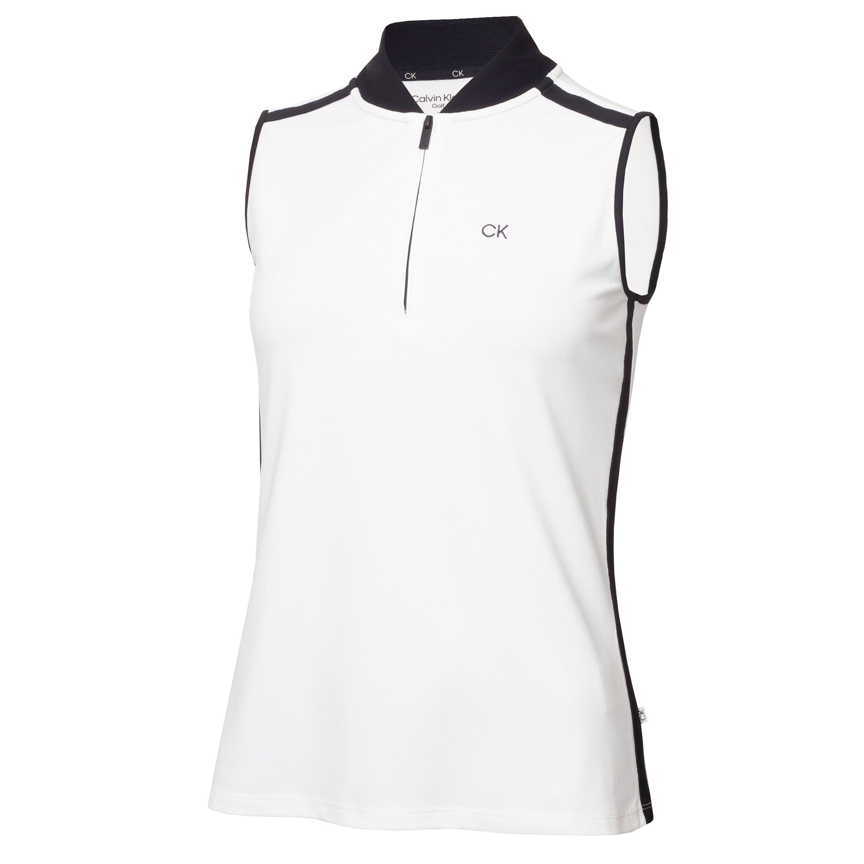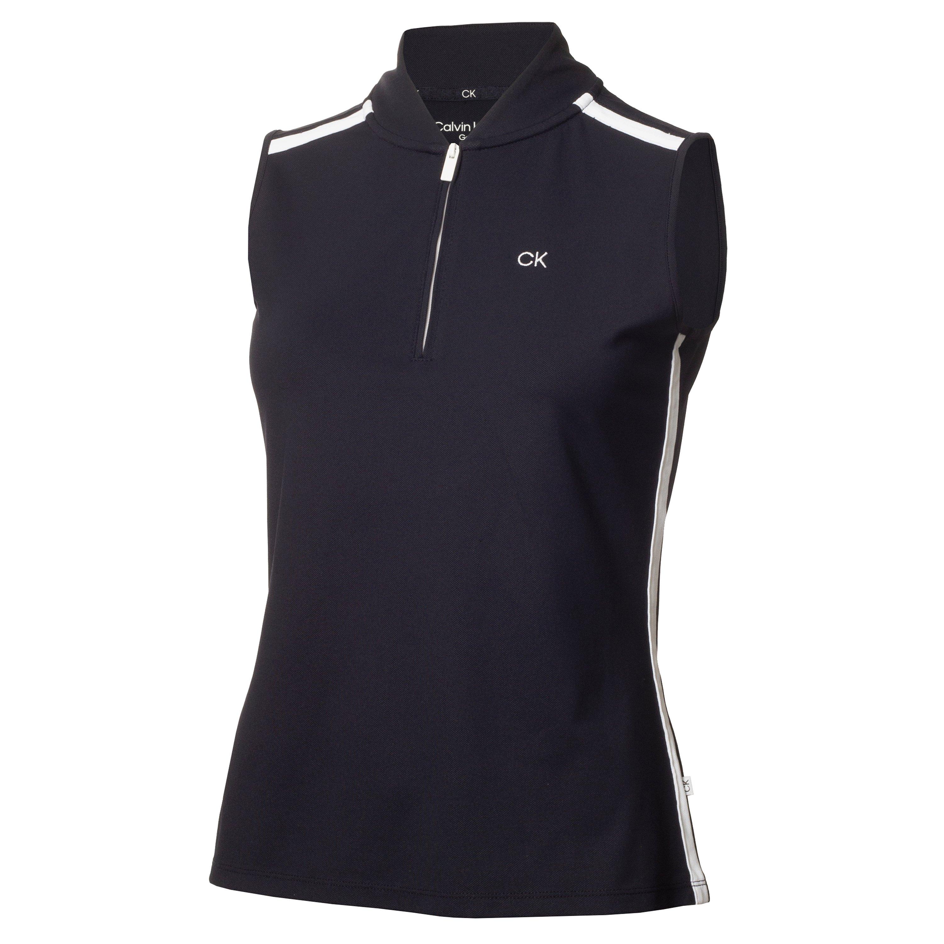 Calvin Klein Golf's Women's Sleeveless Performance Polo Shirt delivers a smart athletic style with technical performance features. The sleeveless design offers unrestricted movement while maintaining the classic polo shape.