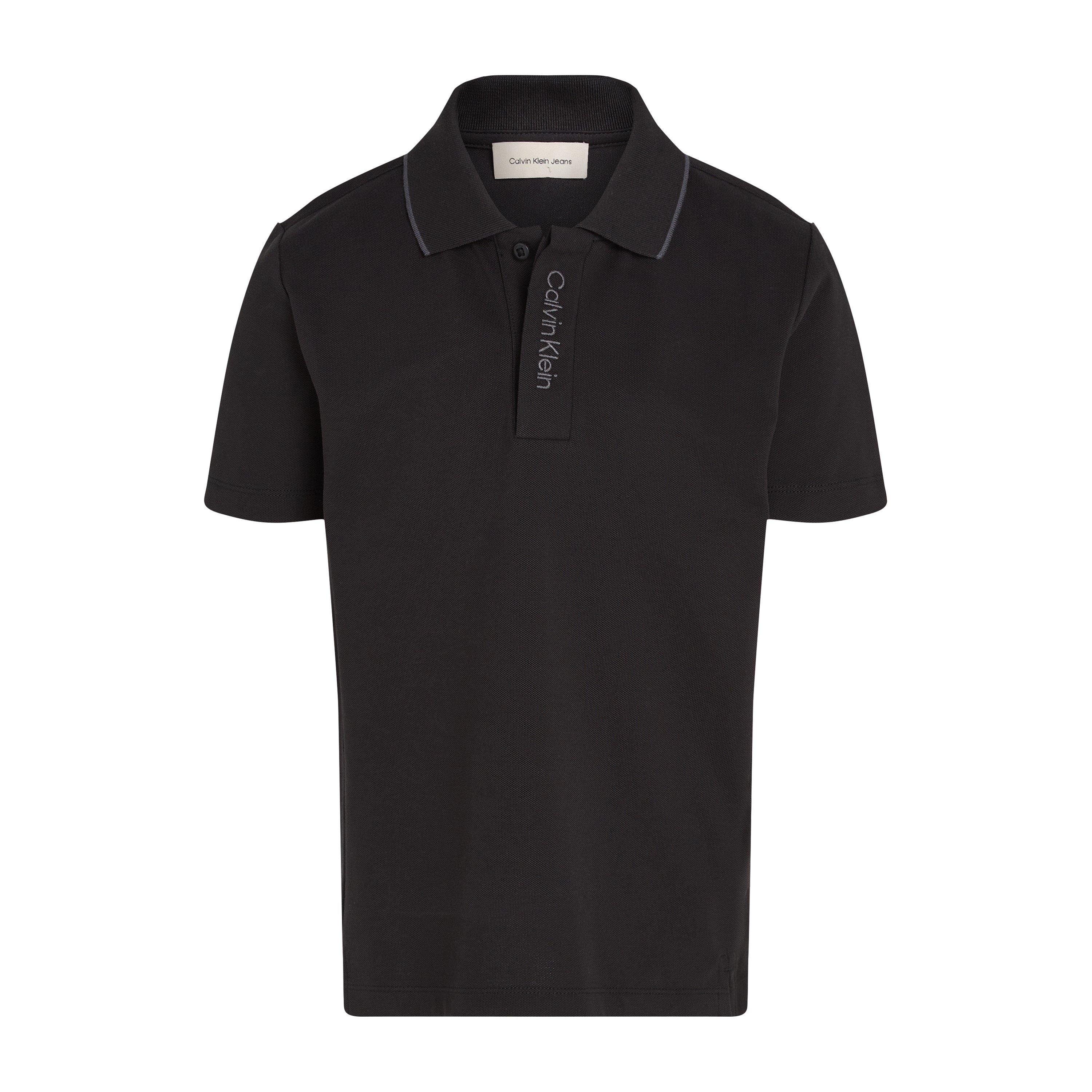 The Calvin Klein Jeans Kids' Embroidered Logo Short Sleeve Polo Shirt is designed for everyday wear with clean lines and a streamlined profile.