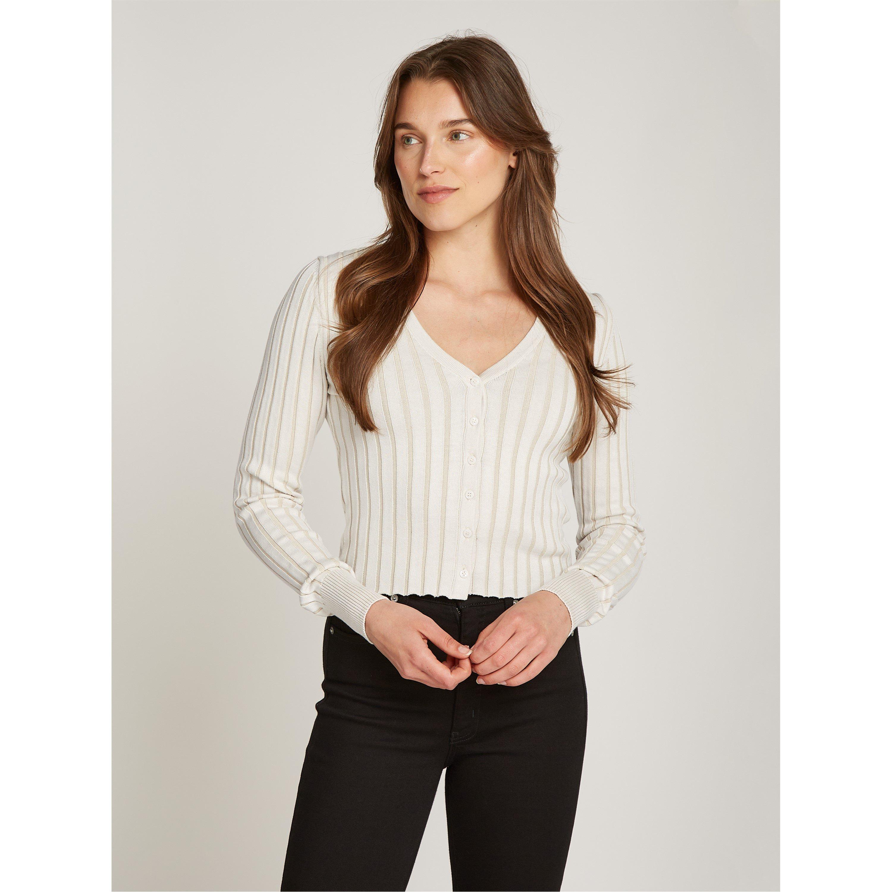 The Calvin Klein Jeans Ribbed Cardigan brings a clean-lined design meant to layer seamlessly over casual or office wear.