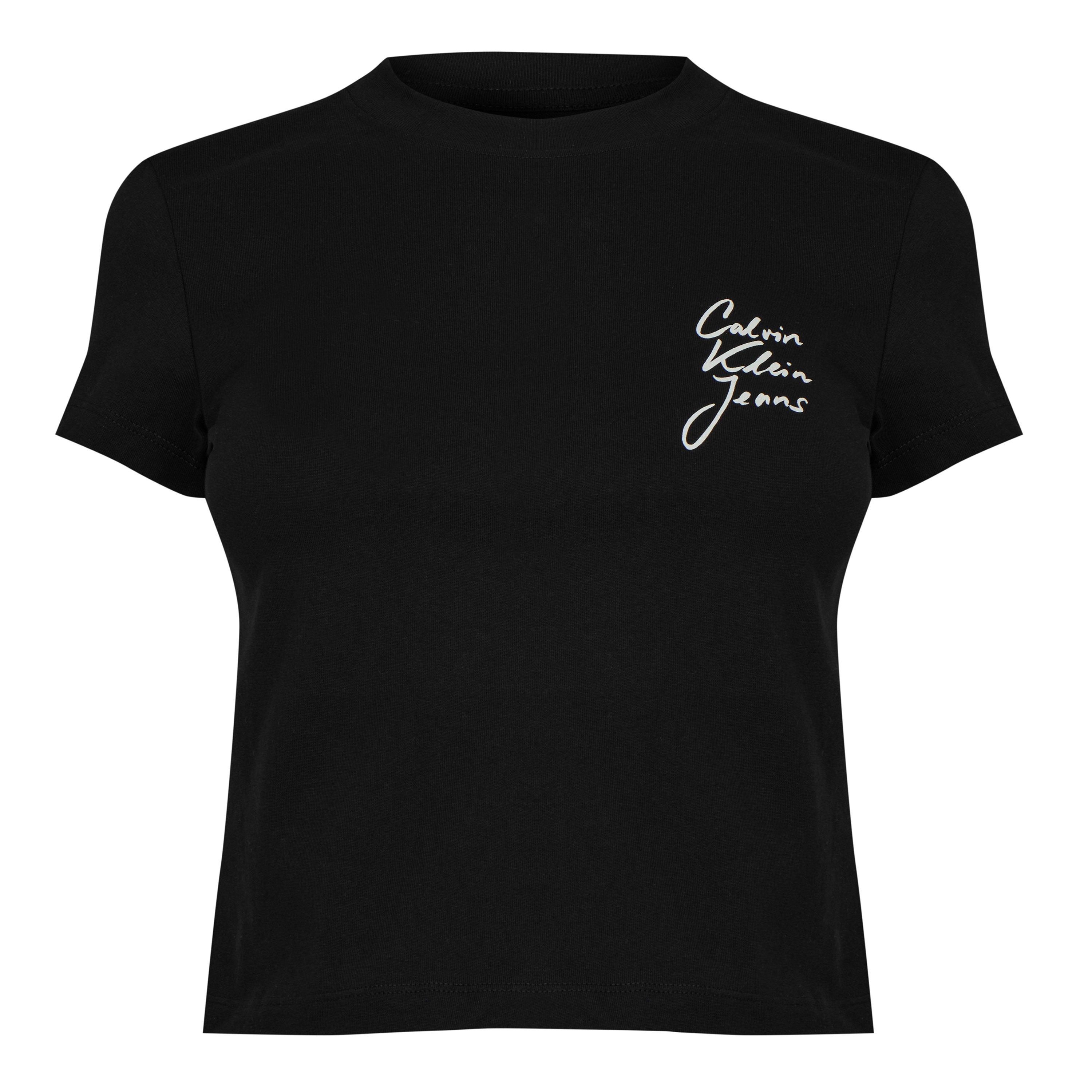 The Calvin Klein Jeans Script Institutional Crop Top is cut short for a contemporary profile. The cropped design sits above the waist for a modern look.