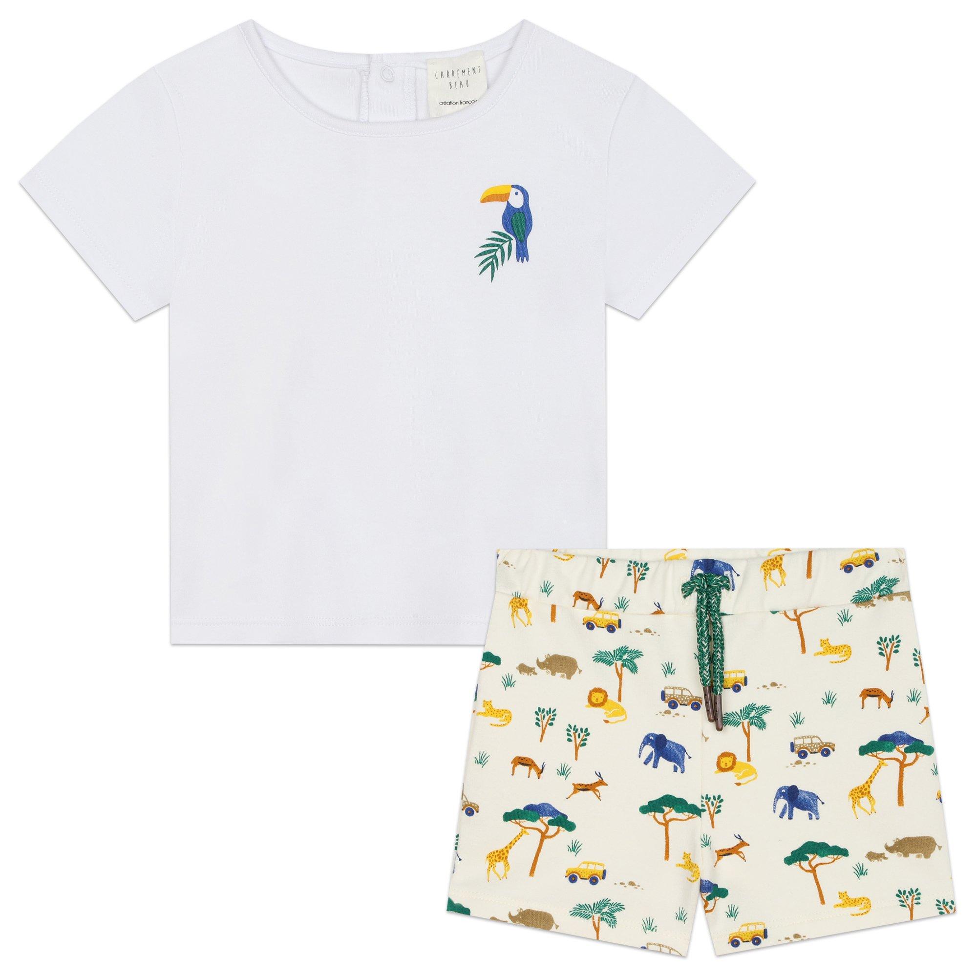 Carrement Beau's T-Shirt and Shorts Set offers playful practicality for young wardrobes. Clean lines and coordinated design make dressing simple while maintaining the brand's distinct fashion aesthetic.