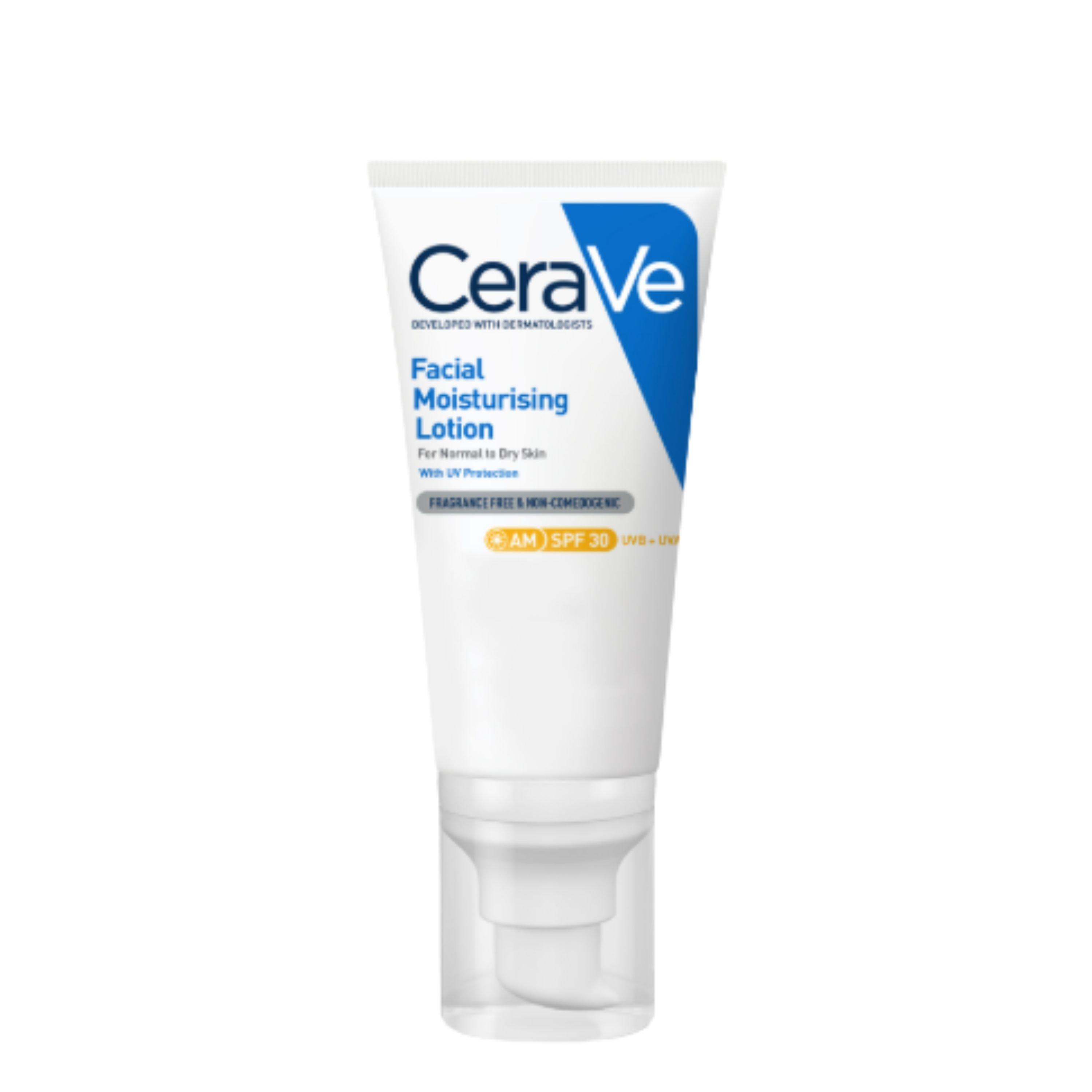 CeraVe AM Facial Moisturising Lotion SPF30 is a lightweight moisturiser, suitable for all skin types, including sensitive, and can be applied on the face daily. Enriched with SPF30, Hyaluronic Acid and 3 Essential Ceramides, this facial moisturiser helps provide broad spectrum UVA/UVB protection, while hydrating skin for up to 24 hours & protecting the skin’s natural barrier.