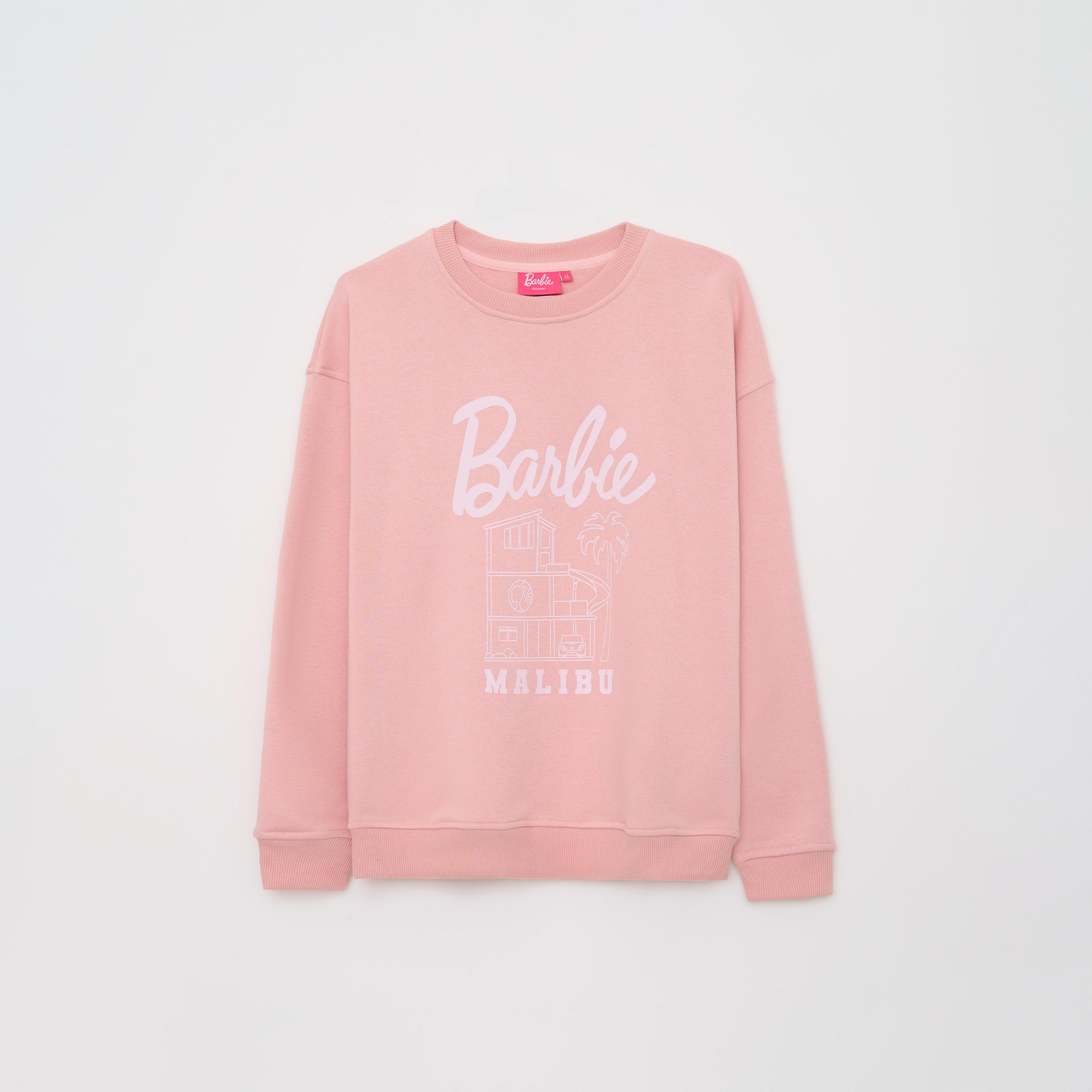 Character's Barbie Sweatshirt pairs its well-known branding with casual fashion design. This comfortable pullover features the Barbie logo for instant recognition, with a relaxed shape and dropped shoulders for everyday comfort and cosy lounge wear.