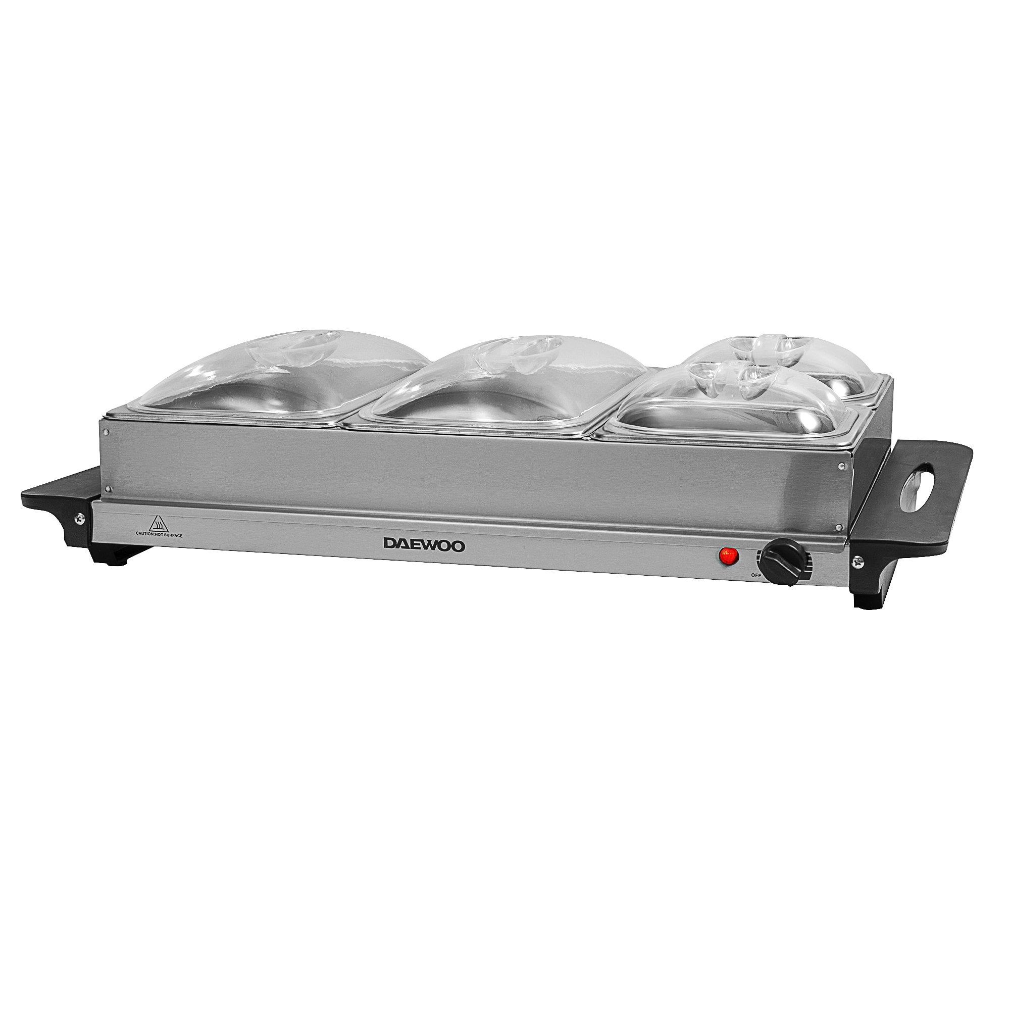 The 4-portion buffet server keeps food warm with adjustable temperature settings and allows serving multiple dishes at once. Cool-touch handles ensure safe transport, while the durable stainless steel design adds style. Perfect for gatherings, it simplifies meal service and enhances dining experiences.