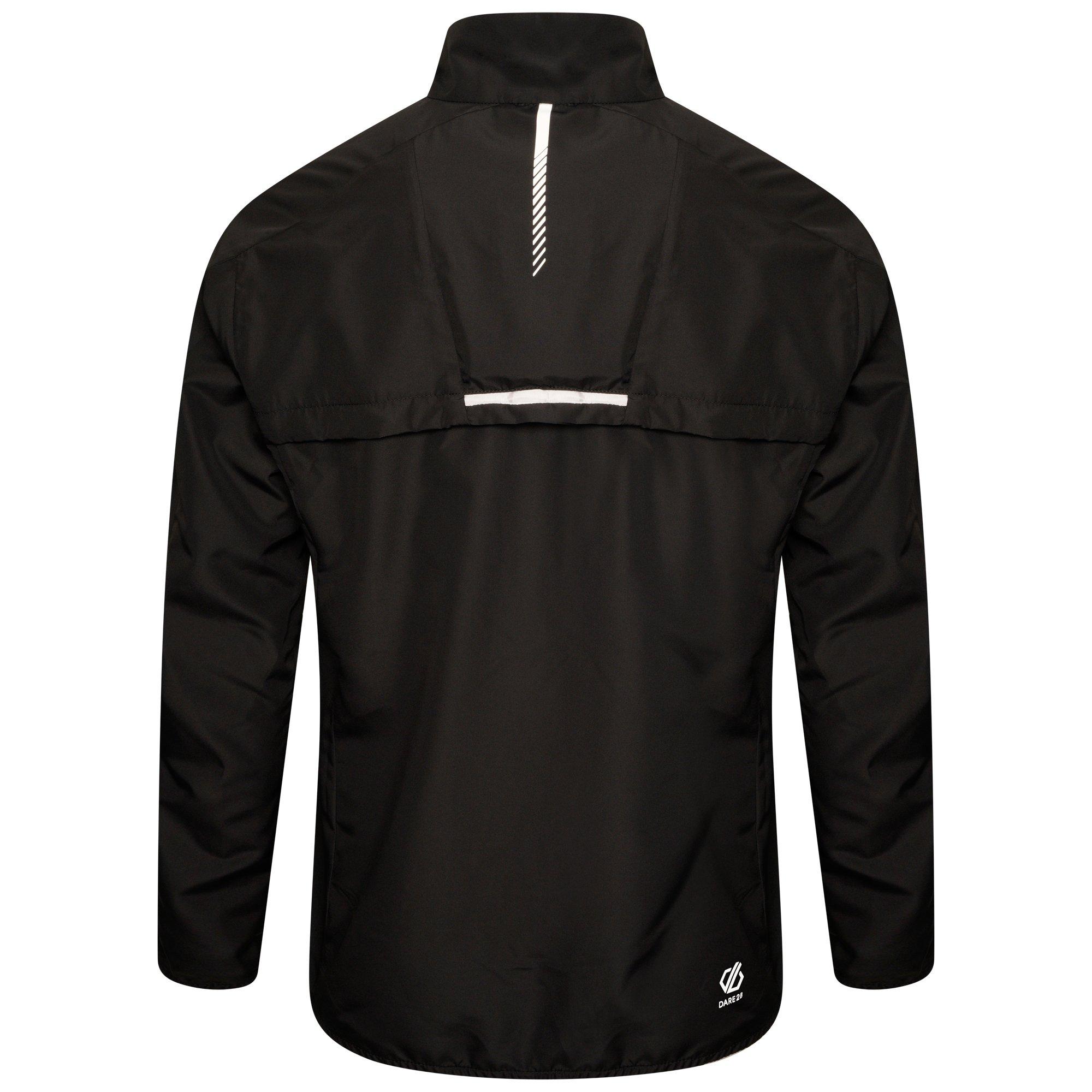 Dare 2b's Men's Illume LED Performance Cycling Jacket offers lightweight windshell protection with innovative visibility. This essential bike gear features integrated LED strips on the sleeves and back panel controlled by a battery-powered switch, while the wind and water-resistant windbreaker apparel includes articulated sleeves for unrestricted movement during rides.