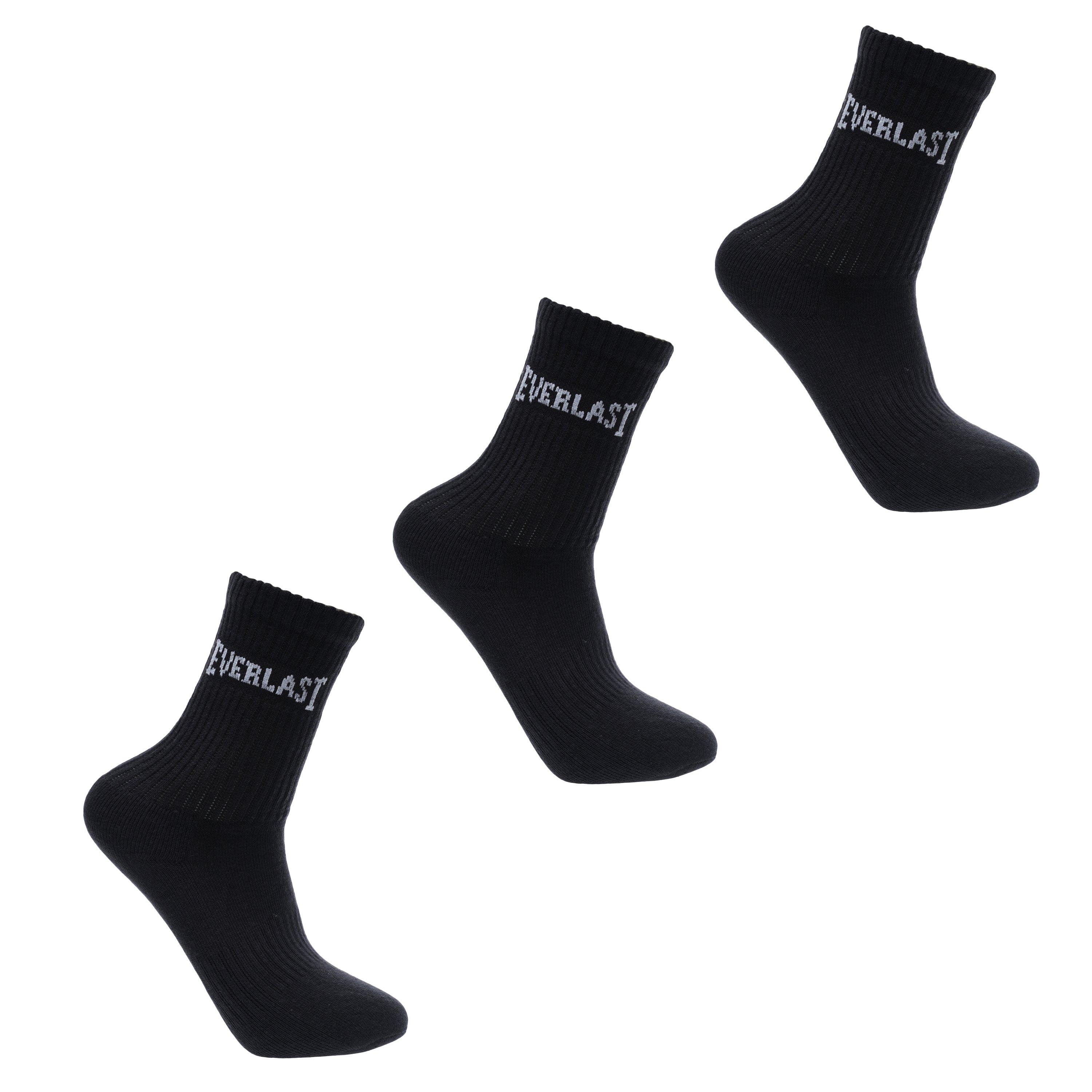 Everlast 3 Pack Crew Socks These Everlast socks are perfect for everyone, featuring a ribbed ankle opening for a comfortable and secure fit together with Everlast branding. The pack of three socks benefit from Ever Cool fabric that regulate temperature to keep you feeling cool.