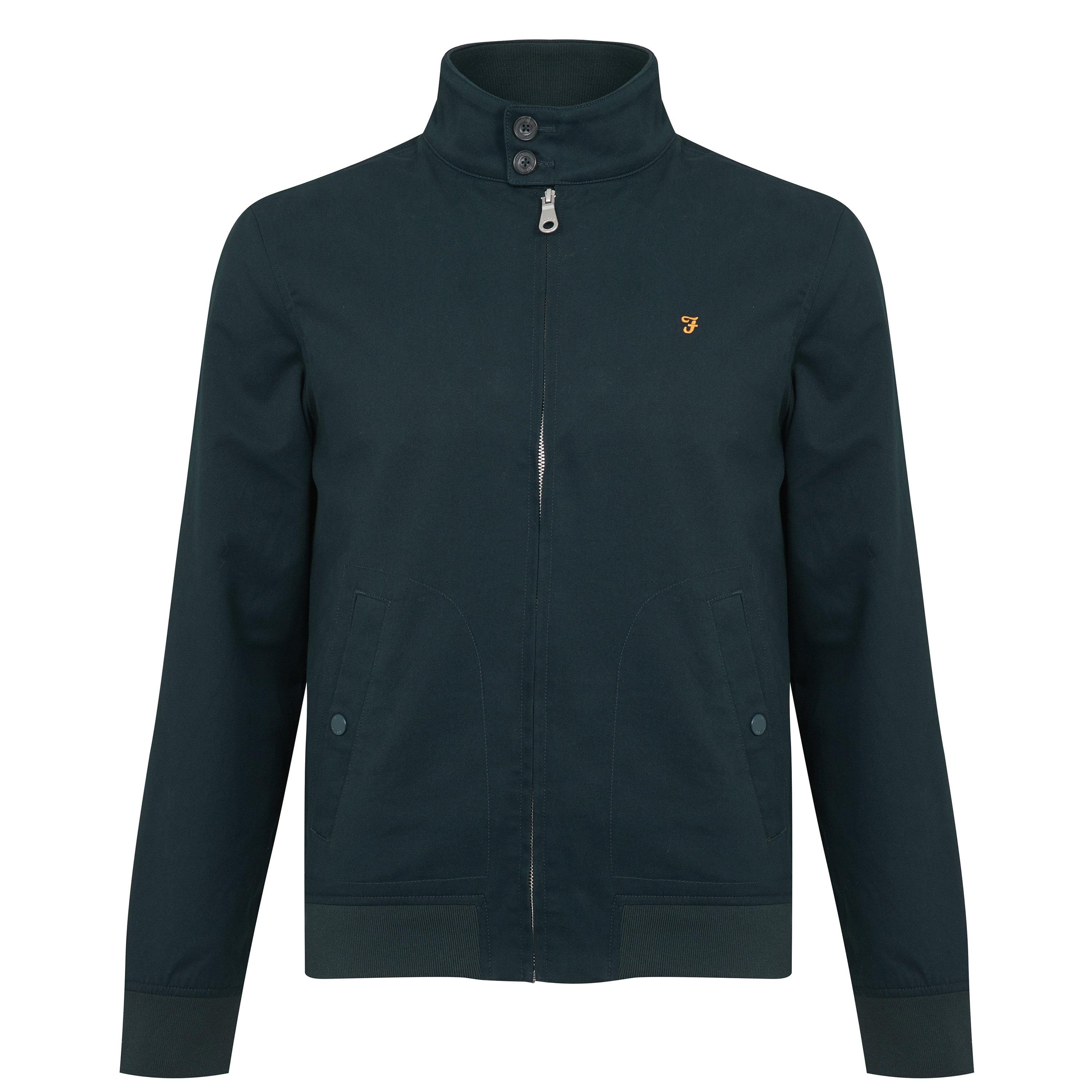 - Design ideal for everyday wearbuttoned collar, a full frontal zip fastening, long sleeves, buttoned front pockets and ribbed trims for an authentic styling. The interior features a Harrington lining, whilst the exterior is decorated with a solid block colour and finished with the Farah logo embroidered to the chest.