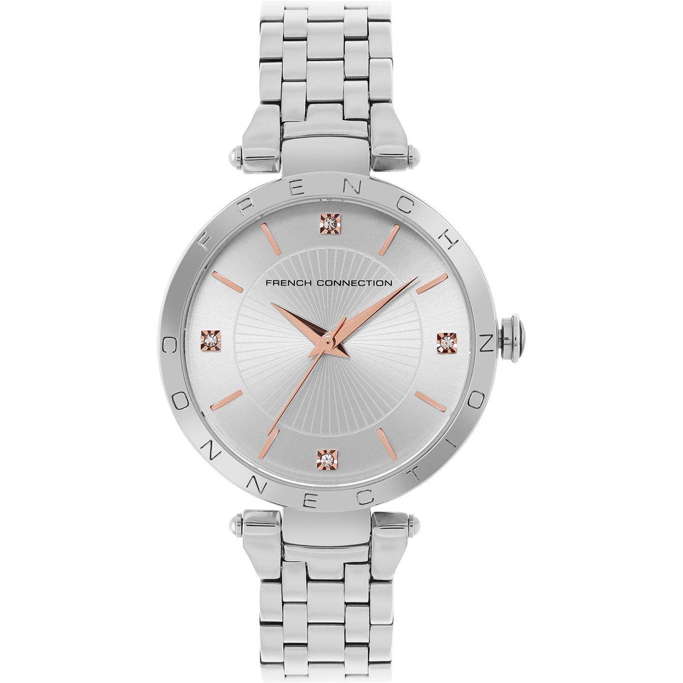 French ConnectionConnection Tinsel SILVER Round Analog Watch With Steel Metal Strap for Women