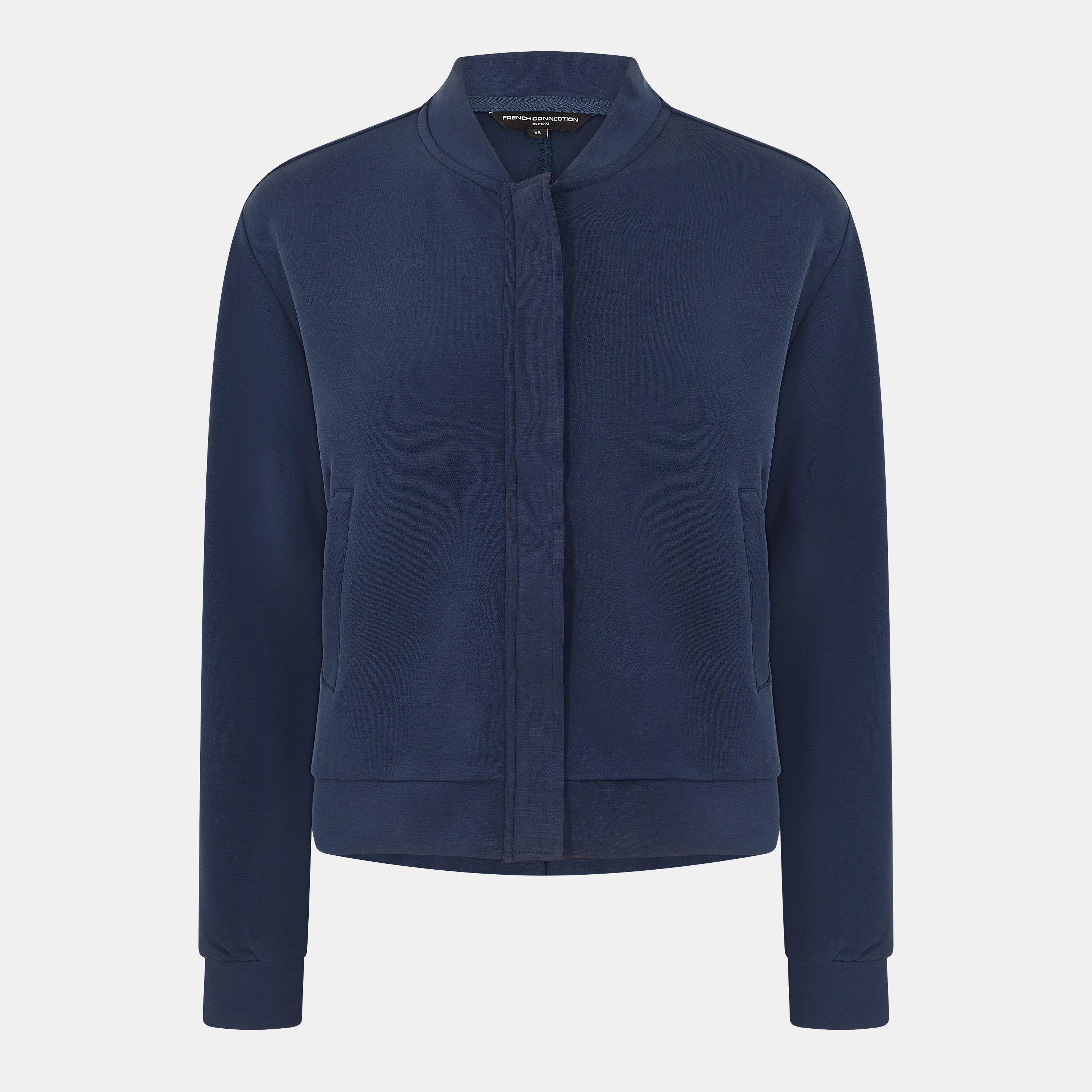 French Connection's Women's Wren Zipped Through Bomber Jacket offers contemporary outerwear with structured style. The sleek bomber shape features a full-zip front and ribbed trims that create a defined shape for casual style.