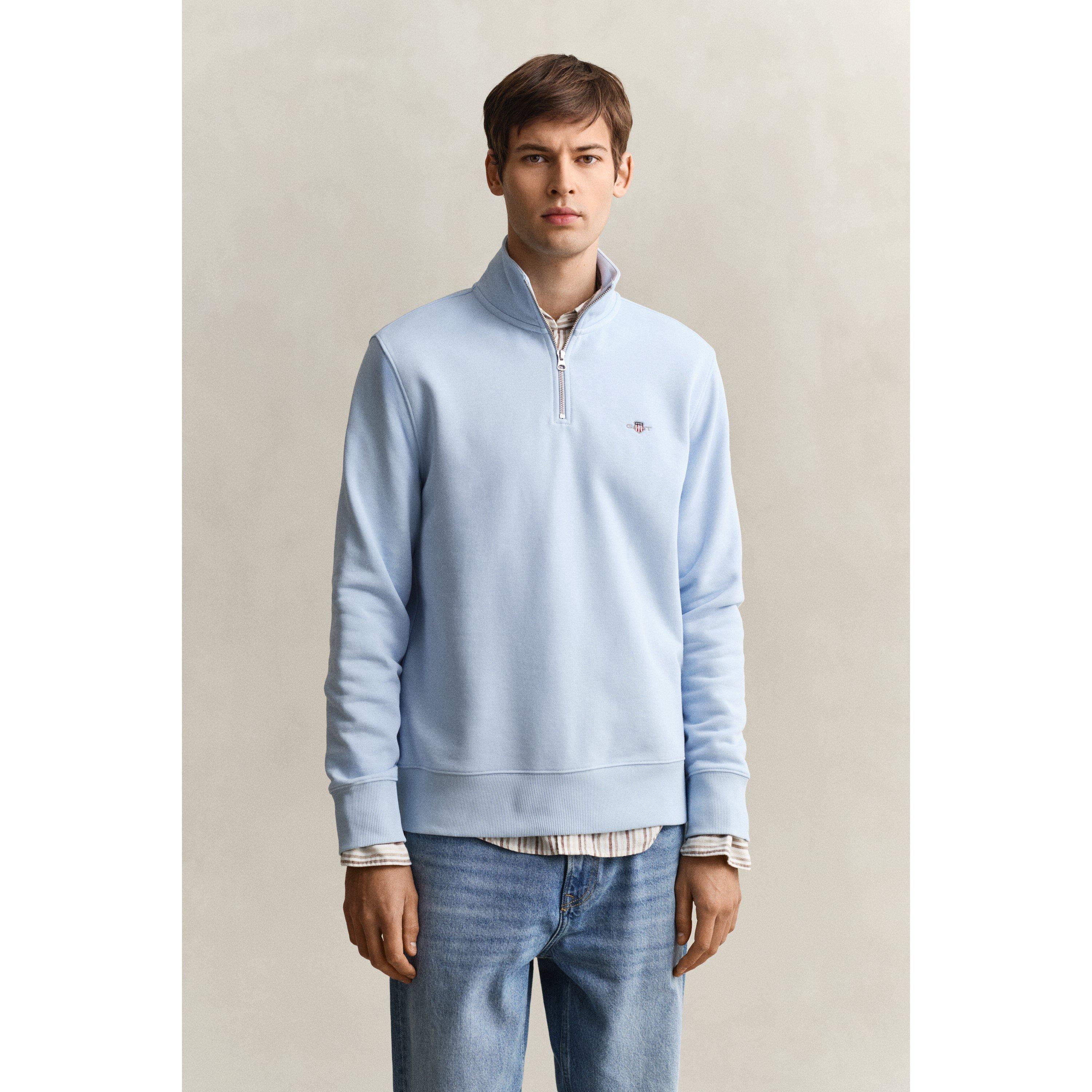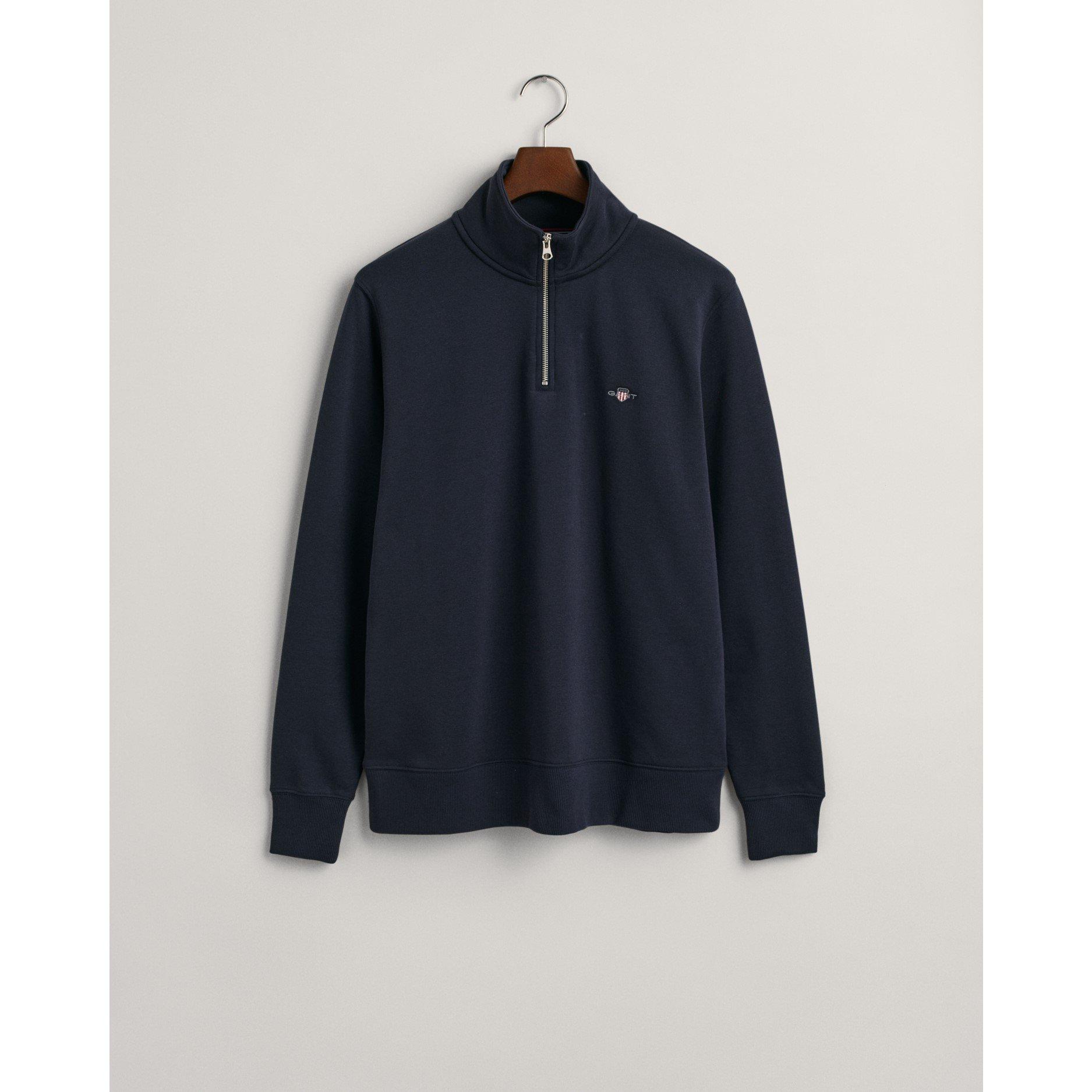 The Gant Shield Half-Zip Sweatshirt is a timeless layer for smart-casual styling. Designed with soft ribbing on the cuffs and hem, it ensures a comfortable yet refined fit. Perfect for weekend outings or relaxed office days, this versatile piece can be worn over tees and layered under jackets during the winter months.