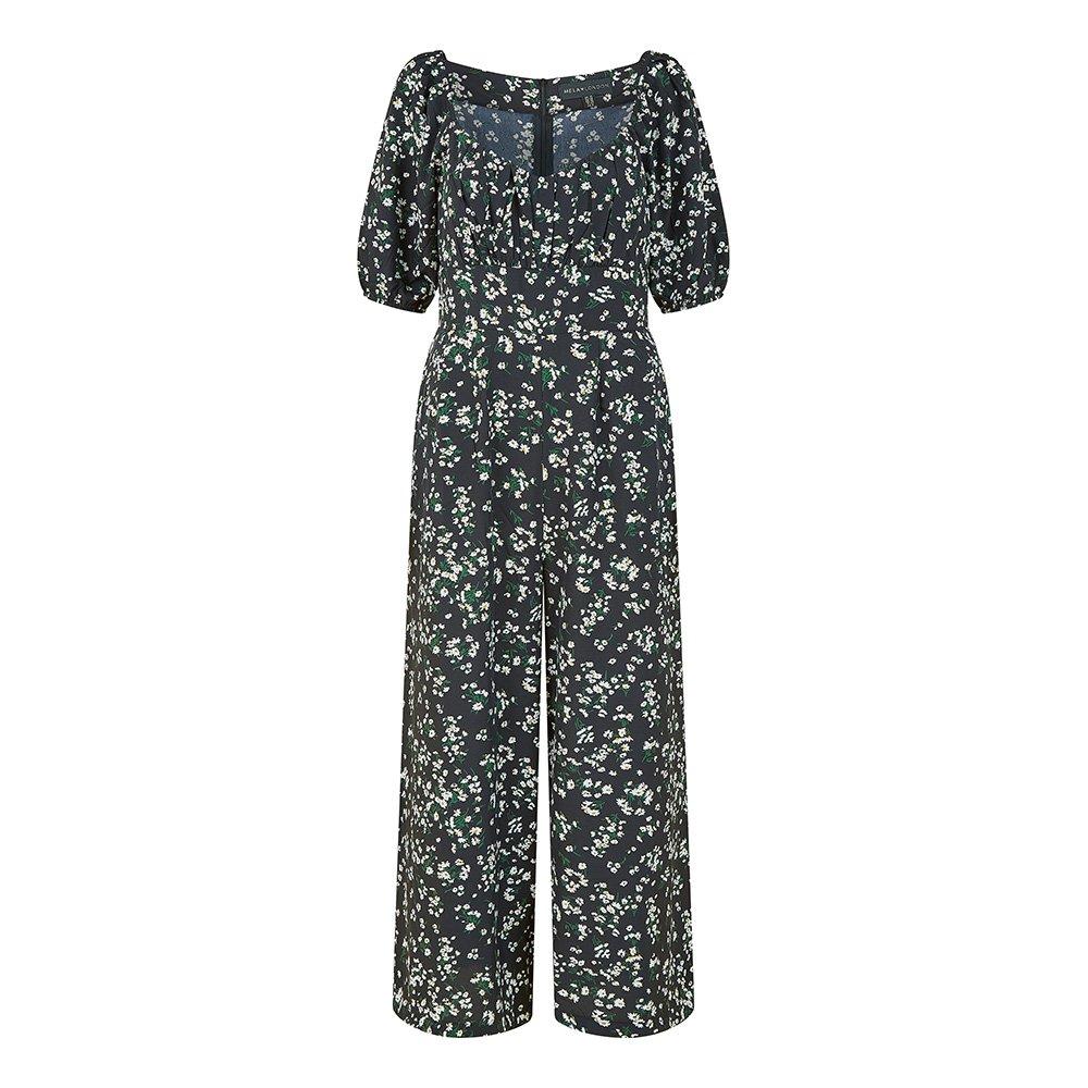 Women's Black Daisy Sweetheart Neckline Jumpsuit