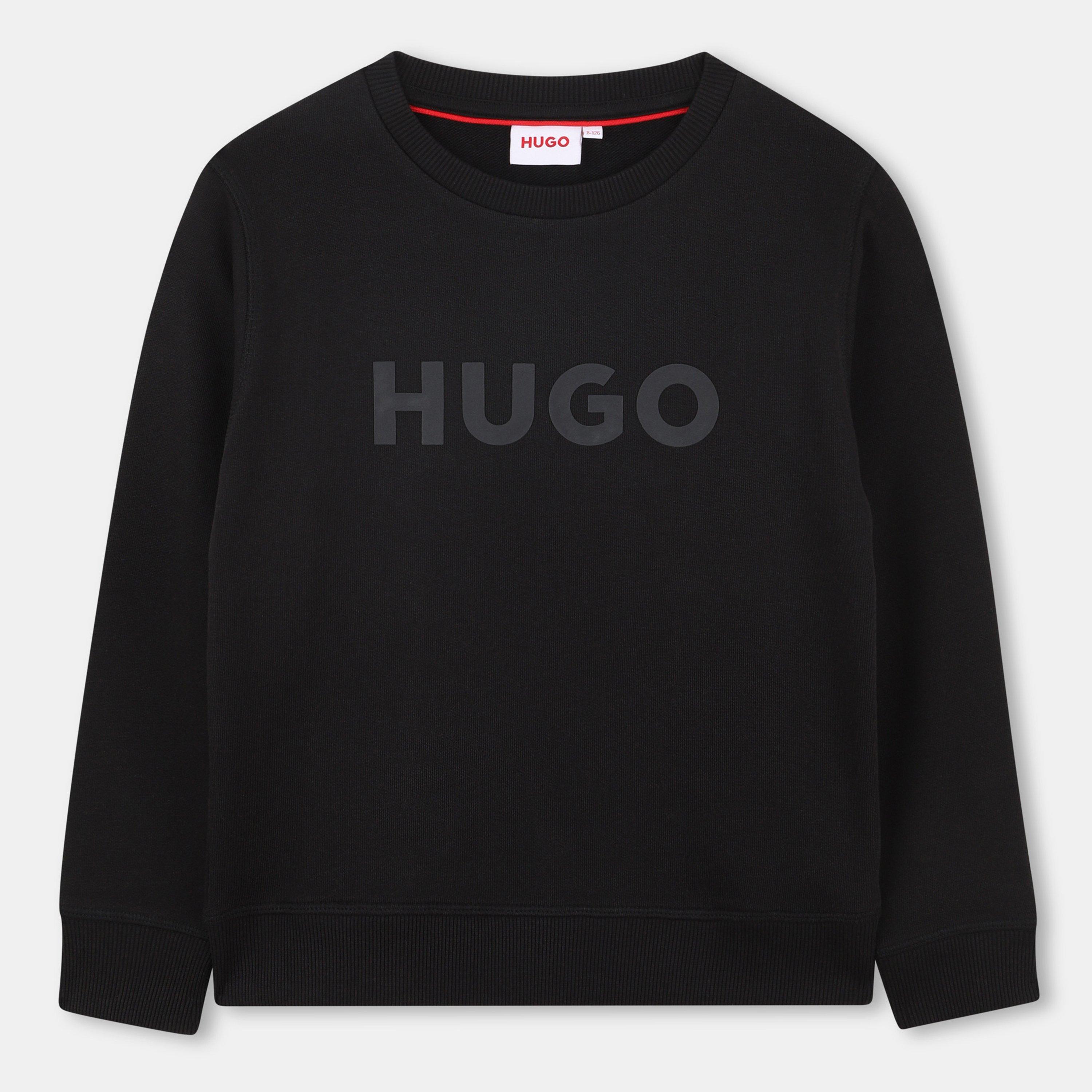 Hugo's Kids' Logo Crew Sweatshirt delivers classic style and comfort. The minimalist fashion design showcases Hugo branding while ribbed trims ensure a secure, durable fit.