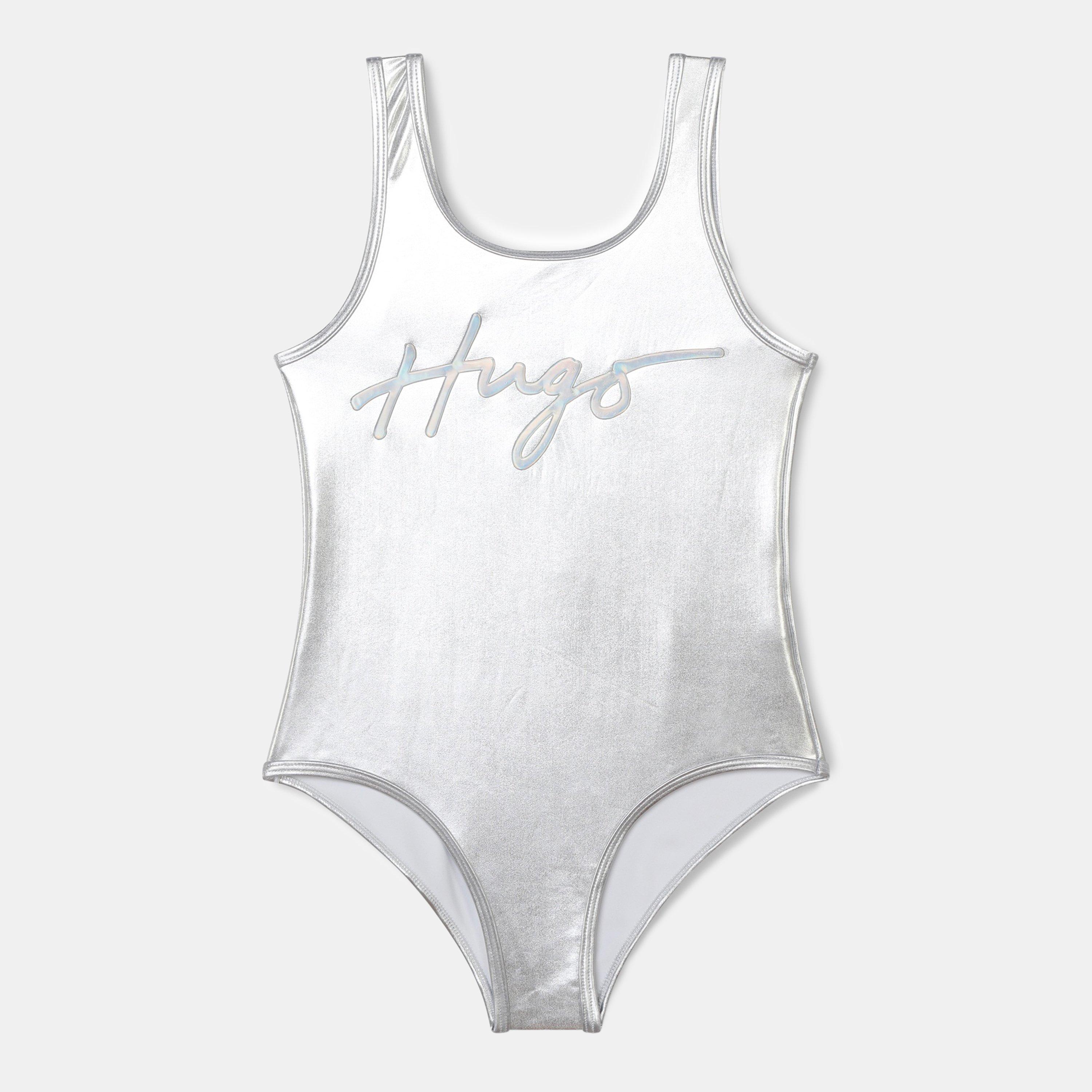 The Hugo Kids' Logo Scoop Neck Swimsuit is built for active wear. Durable materials keep up with swim sessions and poolside play.