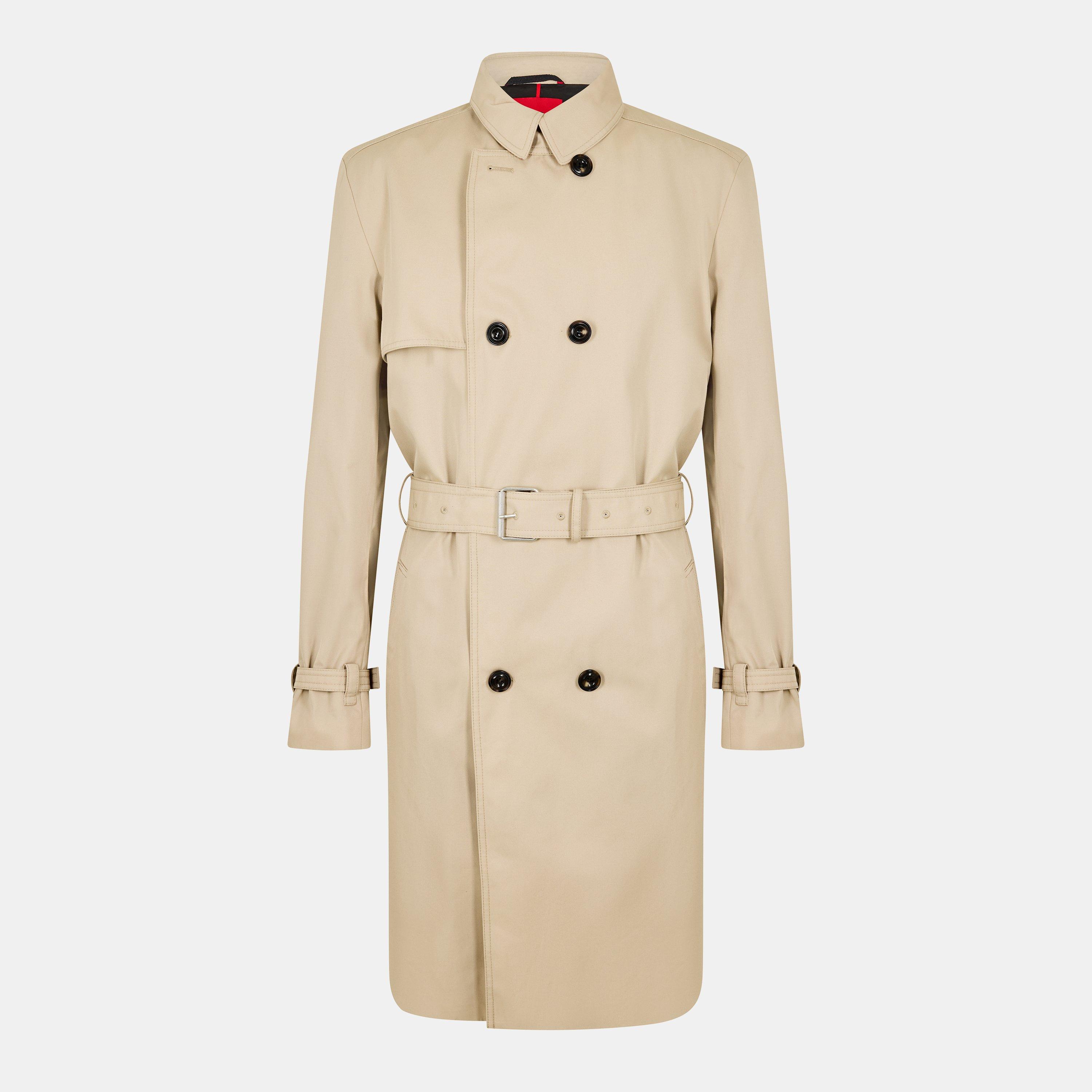 Hugo Men's Double-Breasted Weather-Resistant Tailored Fit Trench Coat