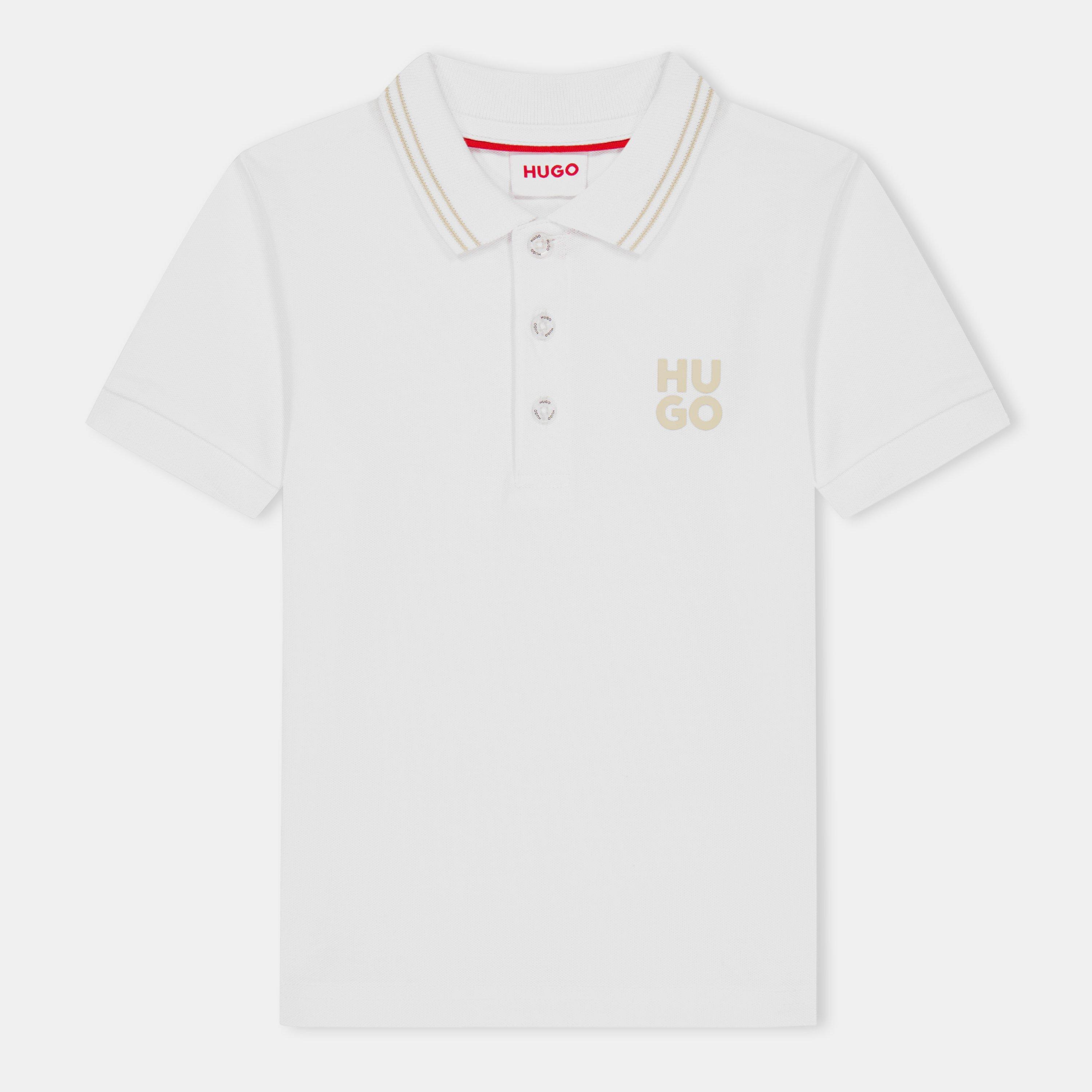 Hugo's Kids' Stacked Logo Short-Sleeve Polo Shirt delivers classic style with modern attitude, featuring bold branding across the chest for appeal.