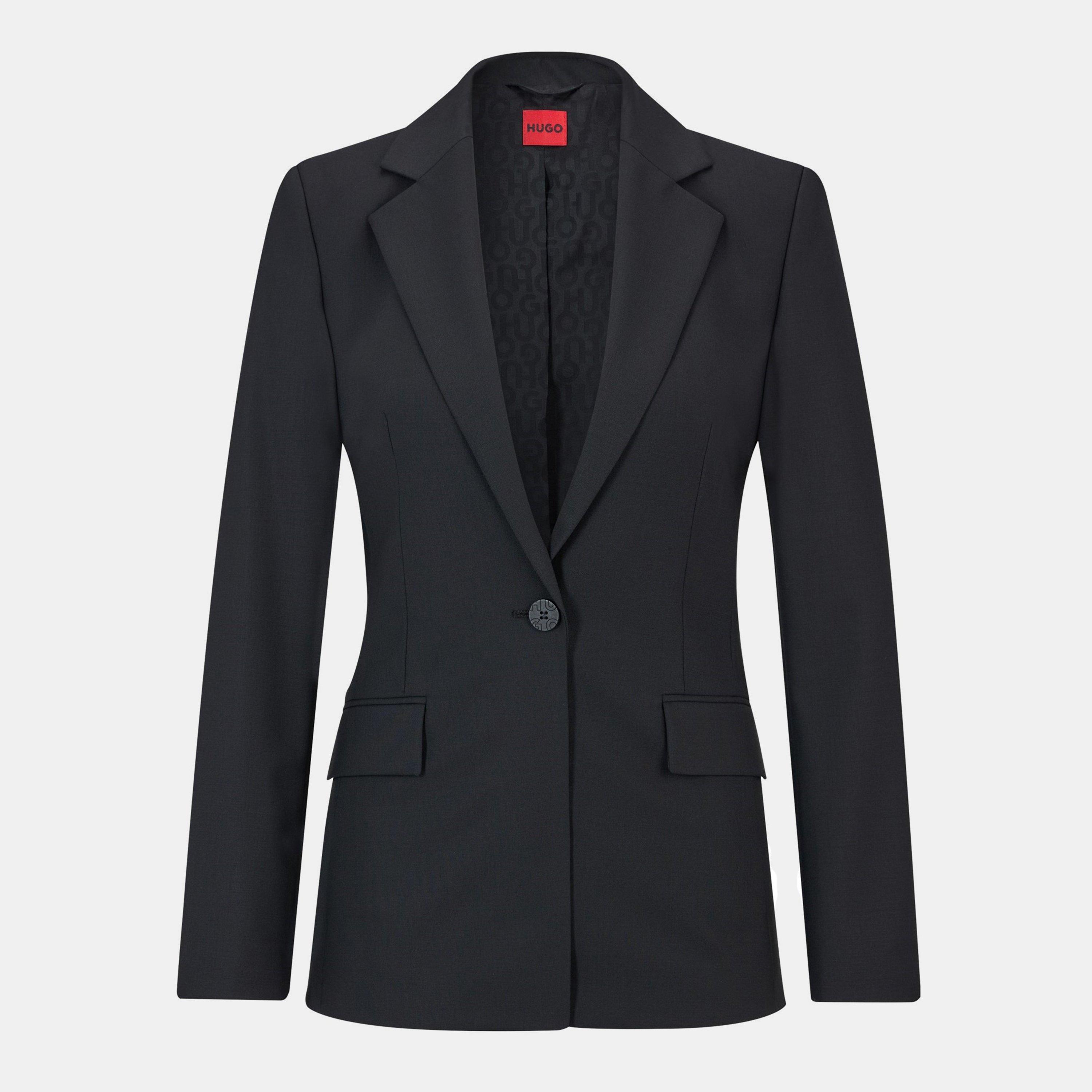 The Hugo Atana Suit Jacket is designed with tailored lapels and a structured shape for a professional profile. The design maintains clean lines without excess bulk.