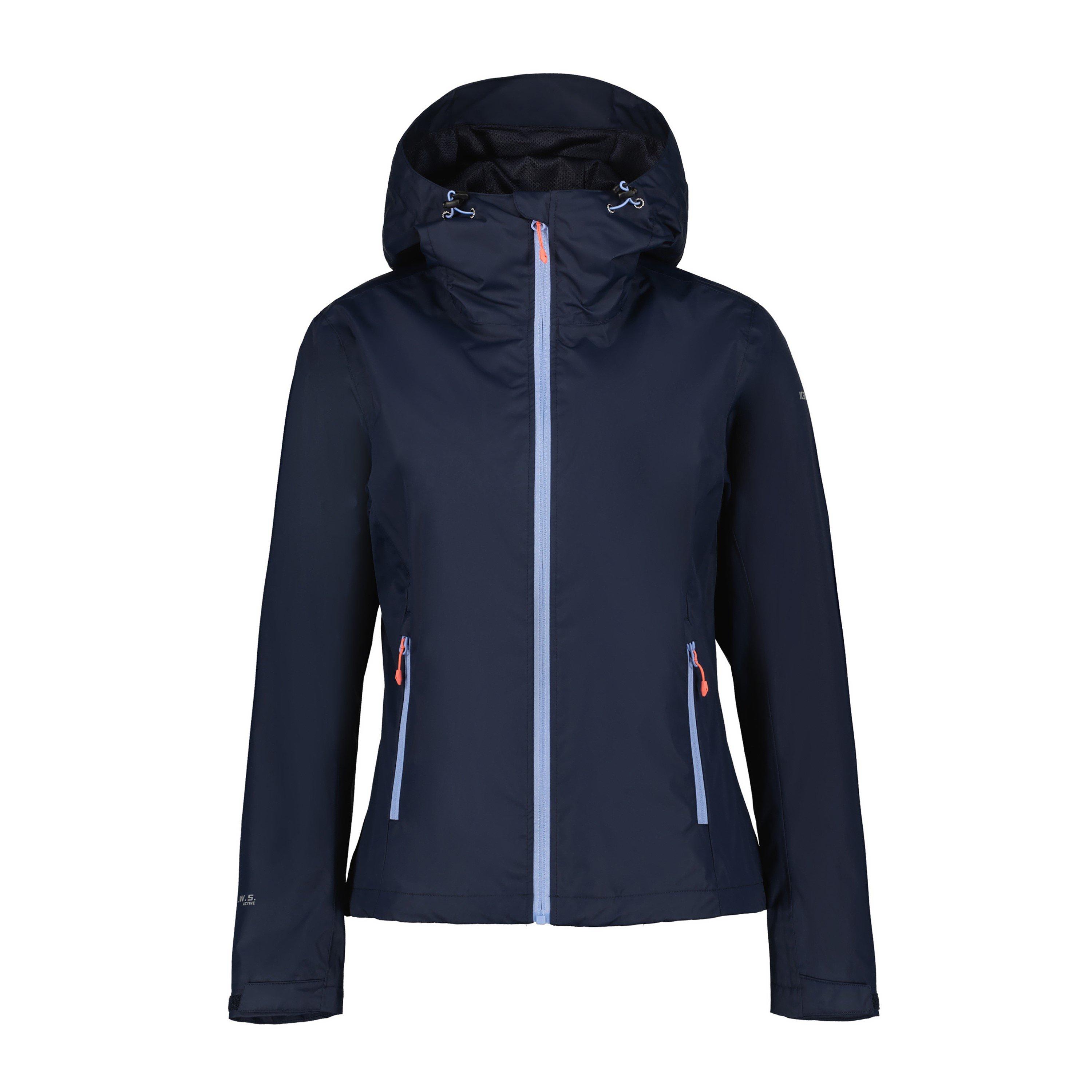 Stay dry through any downpour in the Icepeak Branchville Waterproof Jacket. This technical raincoat for women features sealed seams and a structured design, with adjustable elements that allow for personalised protection when the weather turns and rain intensifies during outdoor adventures. Designed as essential outerwear for outdoor enthusiasts.