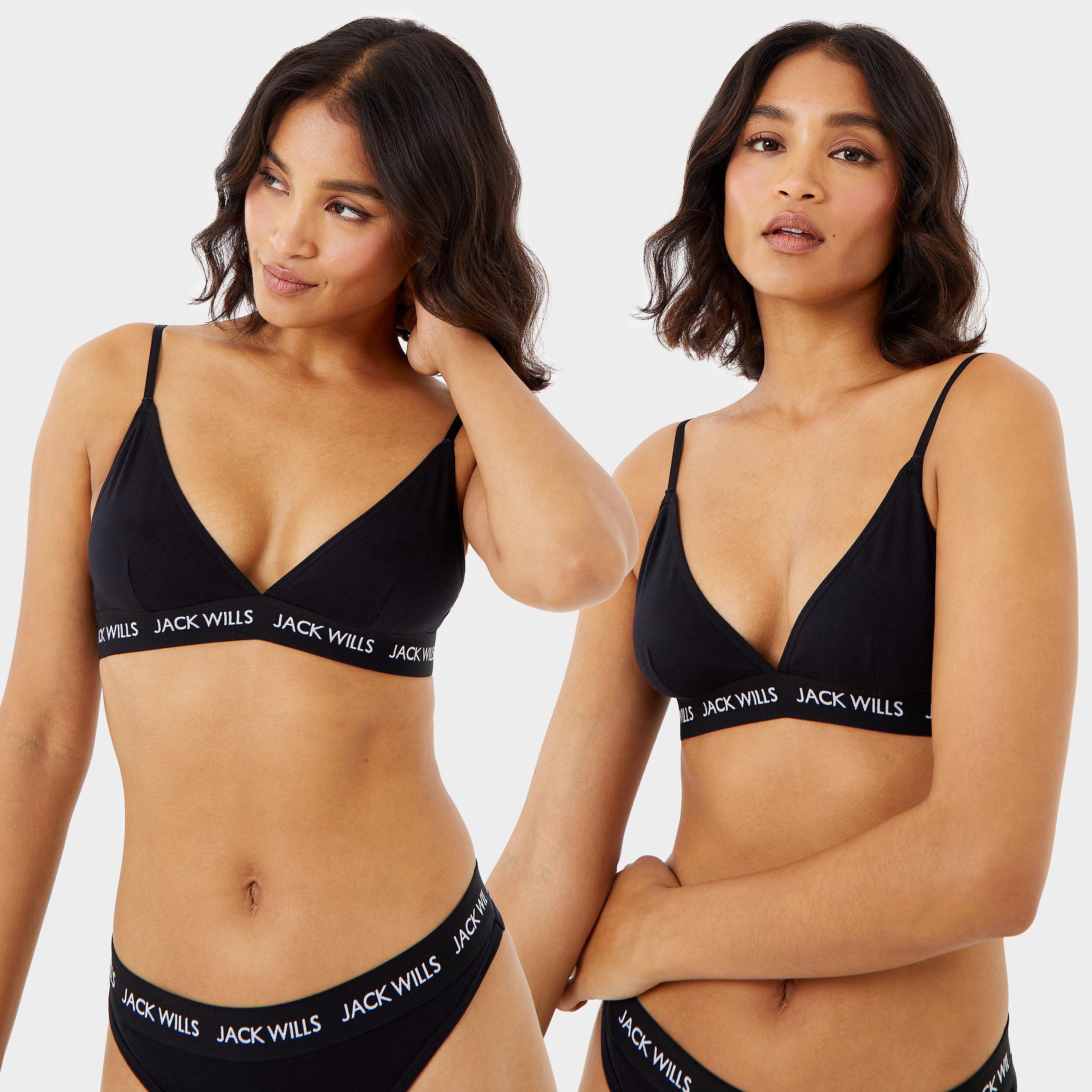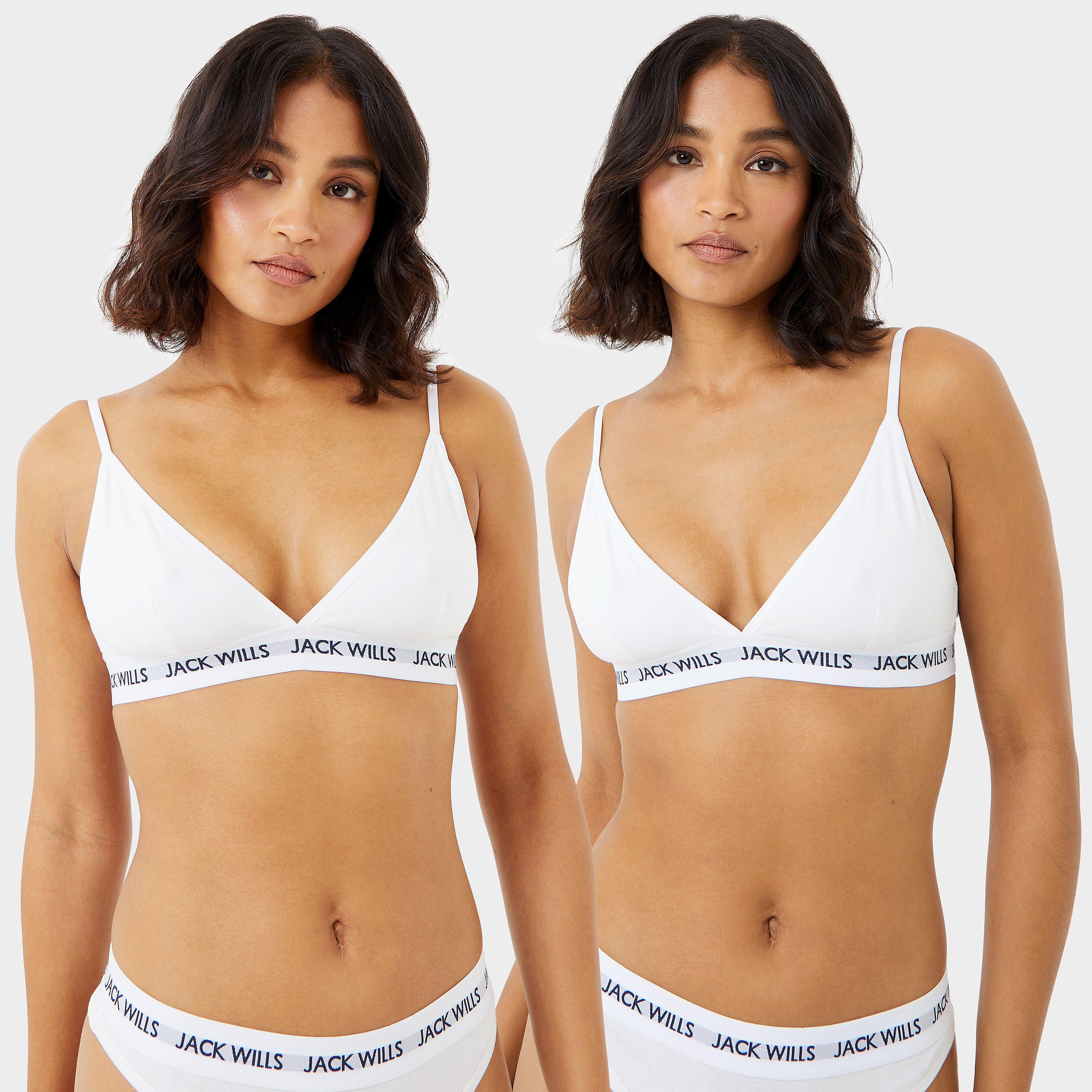 Made from soft cotton jersey, this bralette is designed with a hook fastening, adjustable straps and mesh lining. The Biddstone is finished with an athletic-style triangle cups as well as elastic branding with Jack Wills iconic logo graphics for added support.