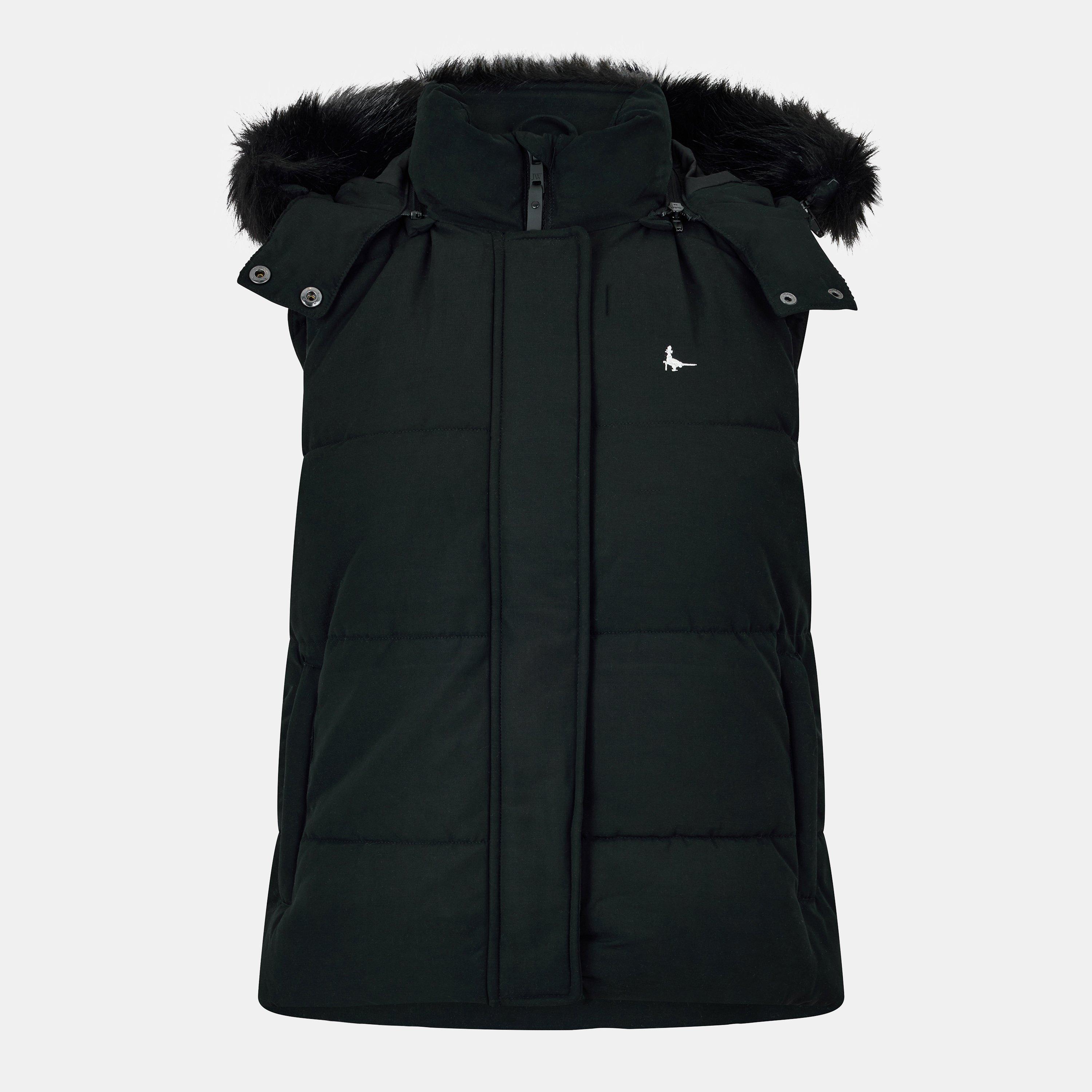 Jack Wills Willow Heritage Waterproof Detachable Hood Puffer Gilet offers classic cold-weather protection with details for outdoor adventures. This sleeveless design features a removable faux-fur trimmed hood, funnel neck collar, and secure press-stud zip closure. The Mr Wills embroidery adds heritage style, making this the ideal piece when you need jacket warmth without the bulk.