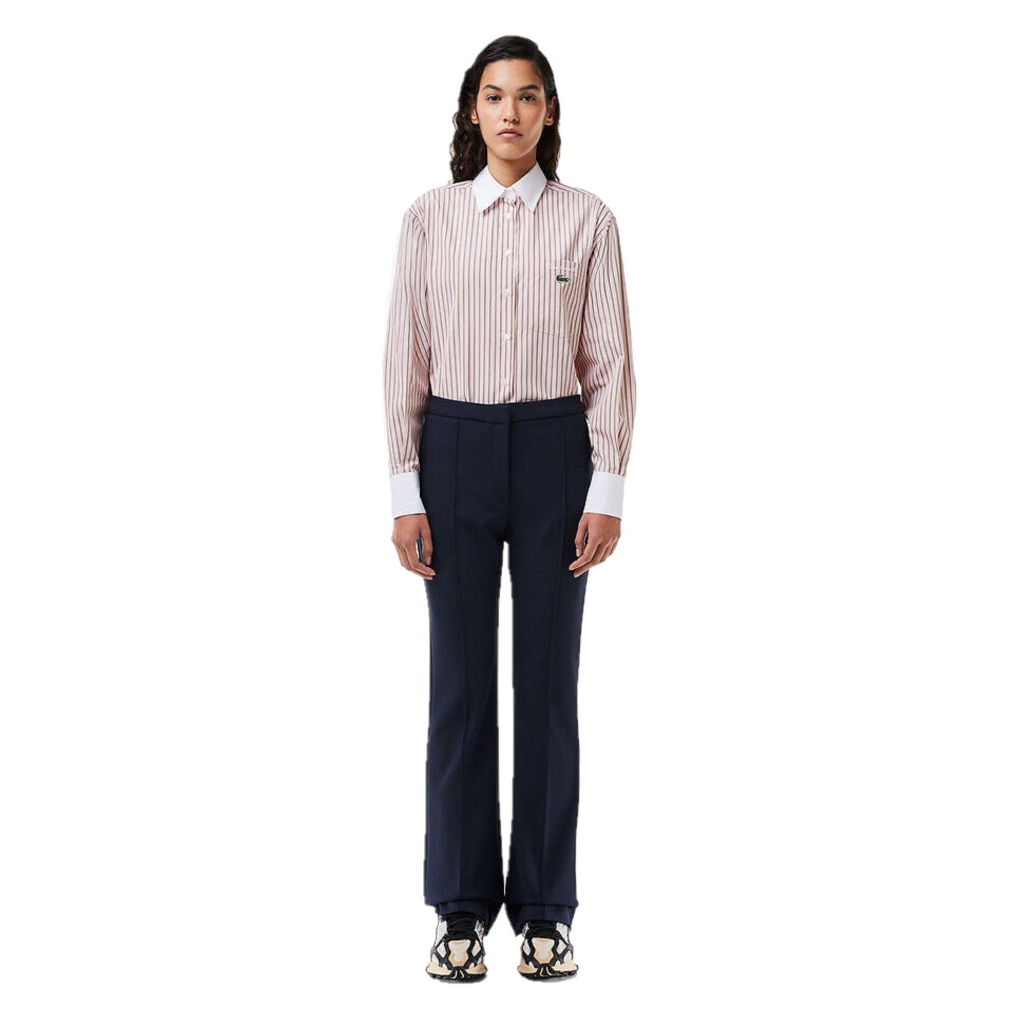 Lacoste Flared Trousers are defined by a flared cut that creates flowing movement from knee to ankle. The tailored design offers chic, retro-inspired proportions ideal for casual fashion styling.