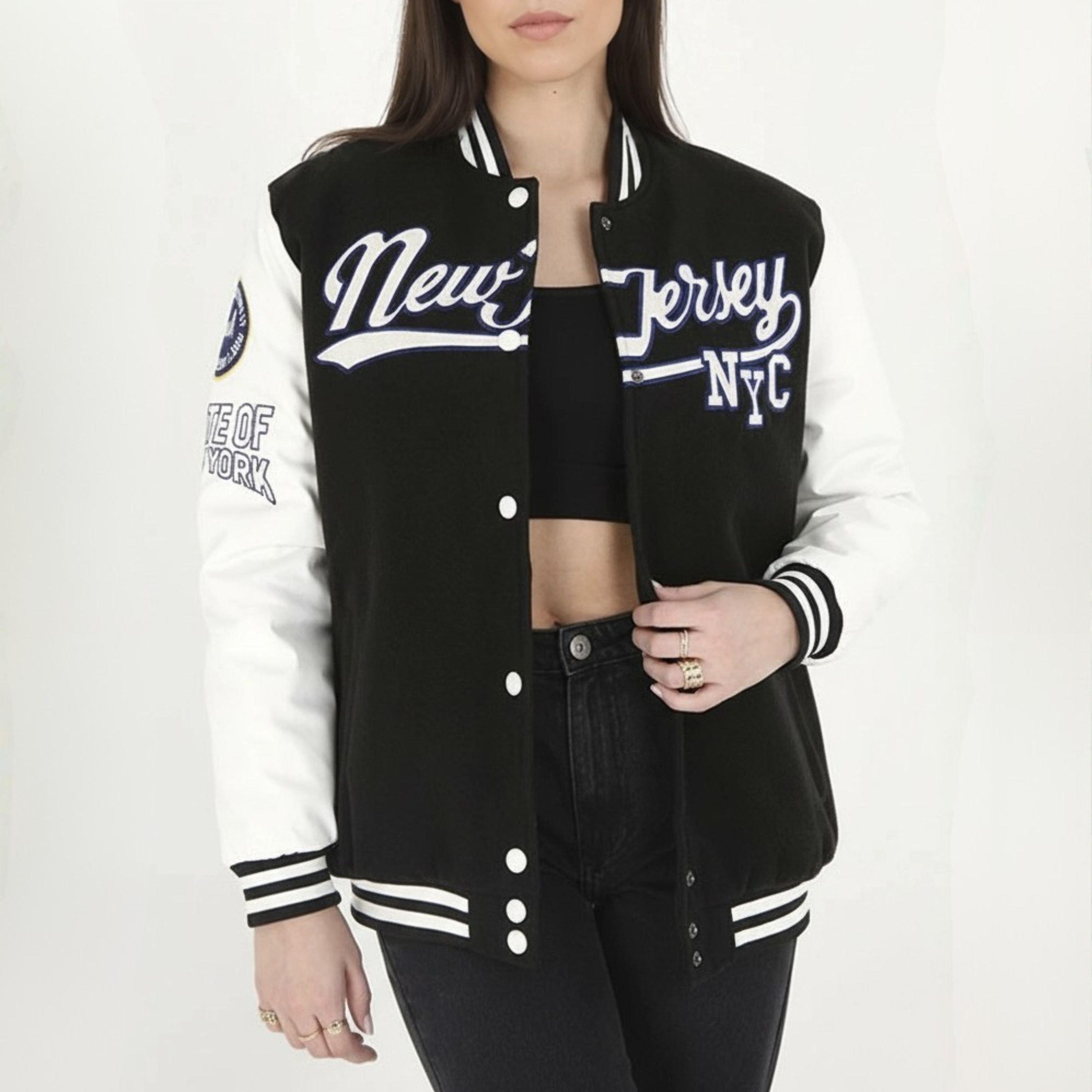 BS Womens Oversized Varsity Jacket with Arm Badge Details