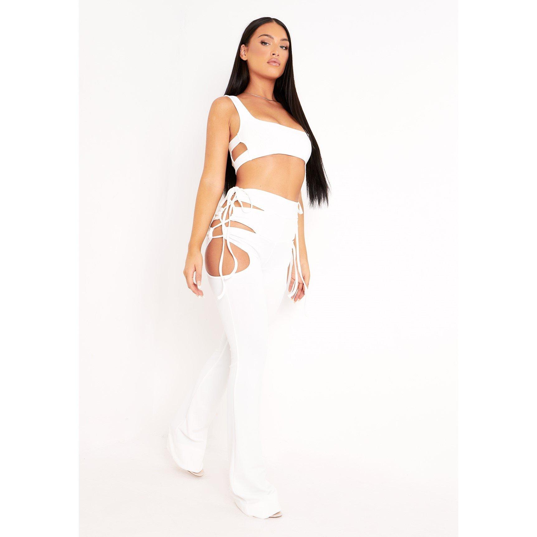 Cut Out Lace Up Flared Trousers