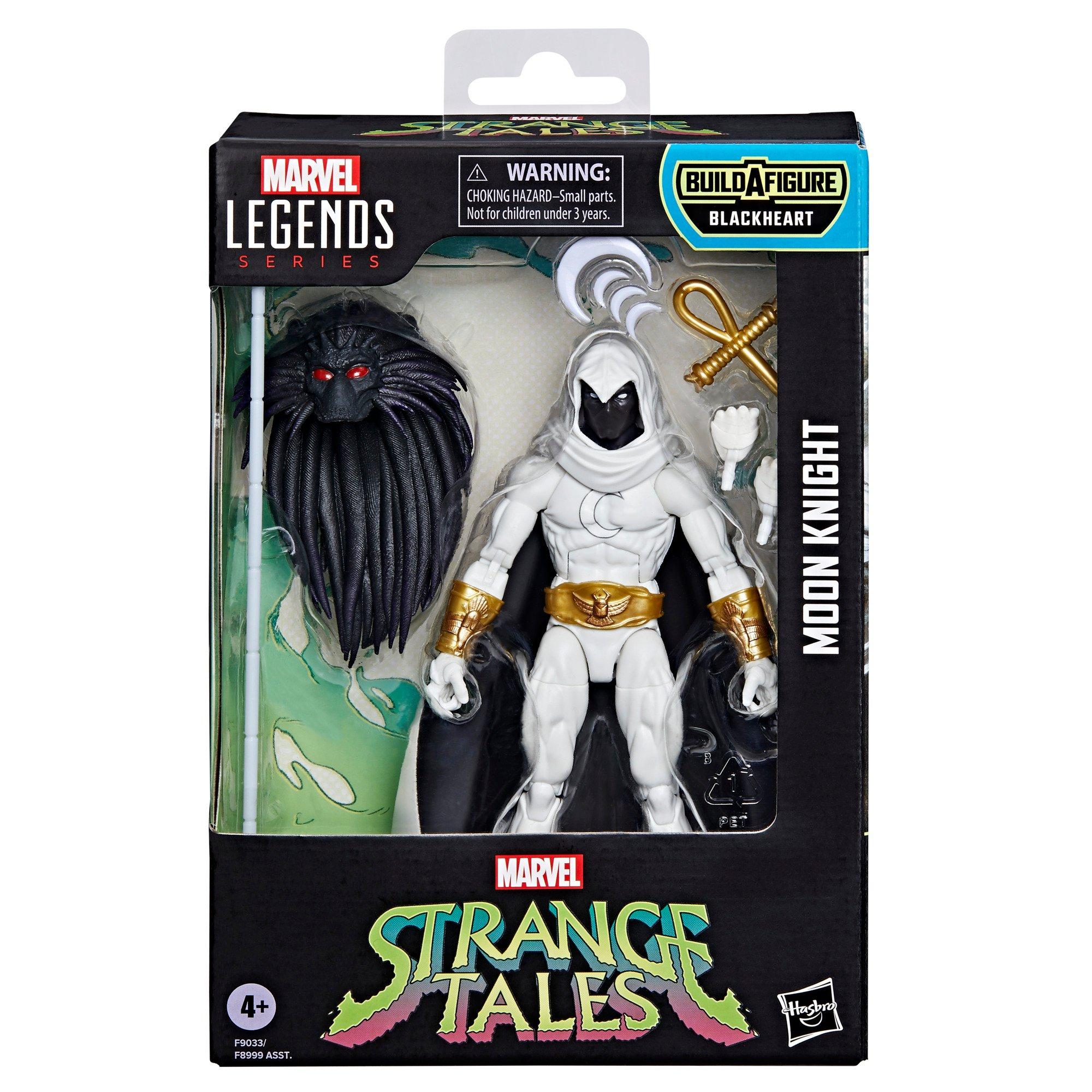 Bring the excitement and wonder of the Marvel Universe to your collection with Hasbro Marvel Legends Moon Knight figure! This collectible 6-inch scale Marvel figure is detailed to look like the character from Marvel's Moon Knight and The West Coast Avengers comics. Moon Knight Marvel Legends figure is fully articulated with premium design and poseable head, arms, and legs. Marvel action figure set comes with 8 accessories and 1 Blackheart Build-A-Figure piece. Look for Bloodstorm, Marvel's Lilith, Marvel's Dracula, Daimon Hellstrom, and Brother Voodoo to complete the additional figure (Each sold separately. Subject to availability). Hasbro Marvel action figures' 6 inch scale make them great for posing and displaying in fans' collections. Reimagine Marvel comics-inspired scenes on your shelf with Marvel Legends action figures.