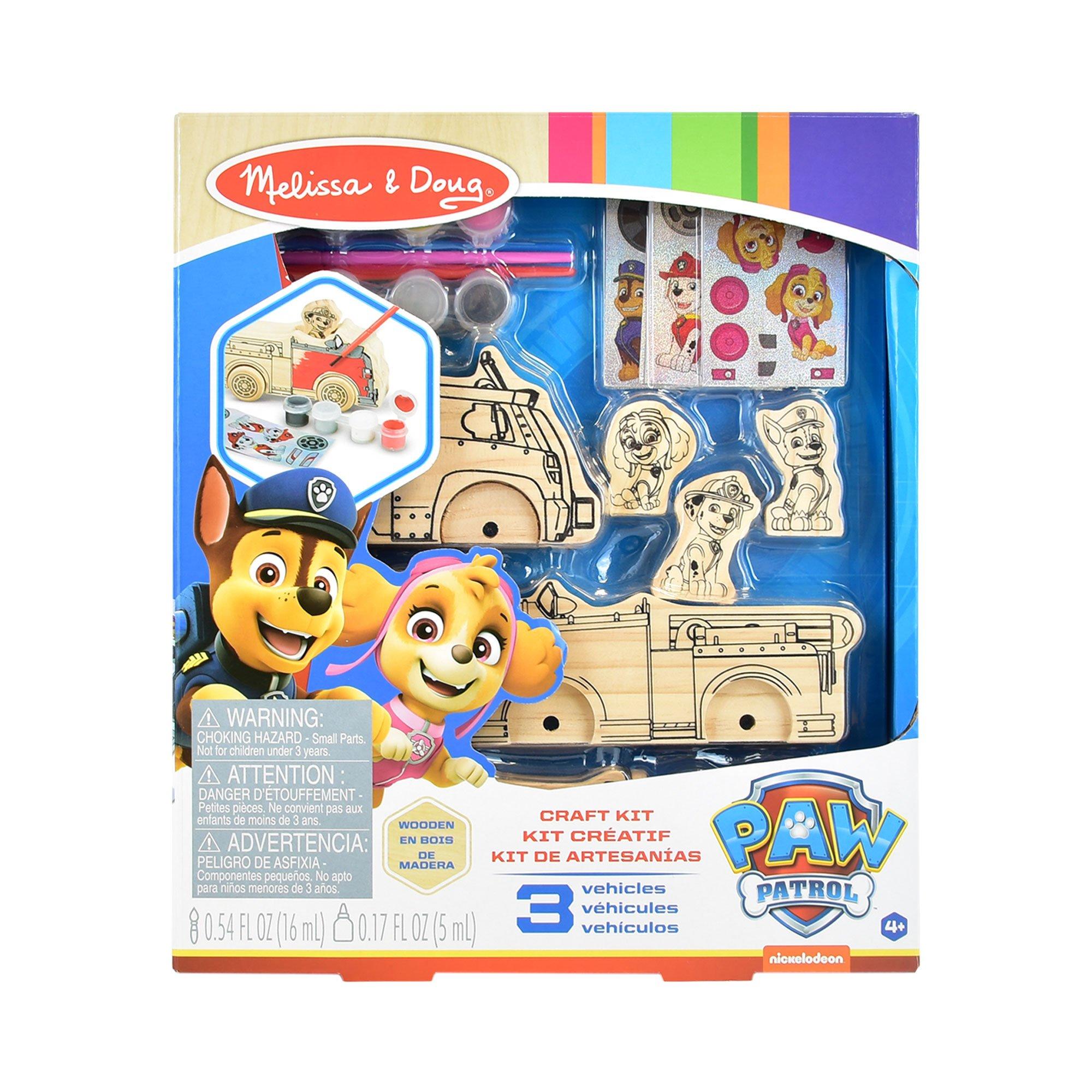 3 PAW Patrol wooden vehicles to build and decorate with paint and stickers. 3 removable wooden pup play figures. 8 pots of paint, 3 paintbrushes, 3 sheets of foil stickers. Perfect for rainy days or as a party activity. Features and Specifications: Perfect as an individual project or a party activity and favor 3 removable wooden pup play figures 8 pots of paint, 3 paintbrushes, 3 sheets of foil stickers. Dimensions: 29.85 cm x 25.40 cm x 6.35 cm