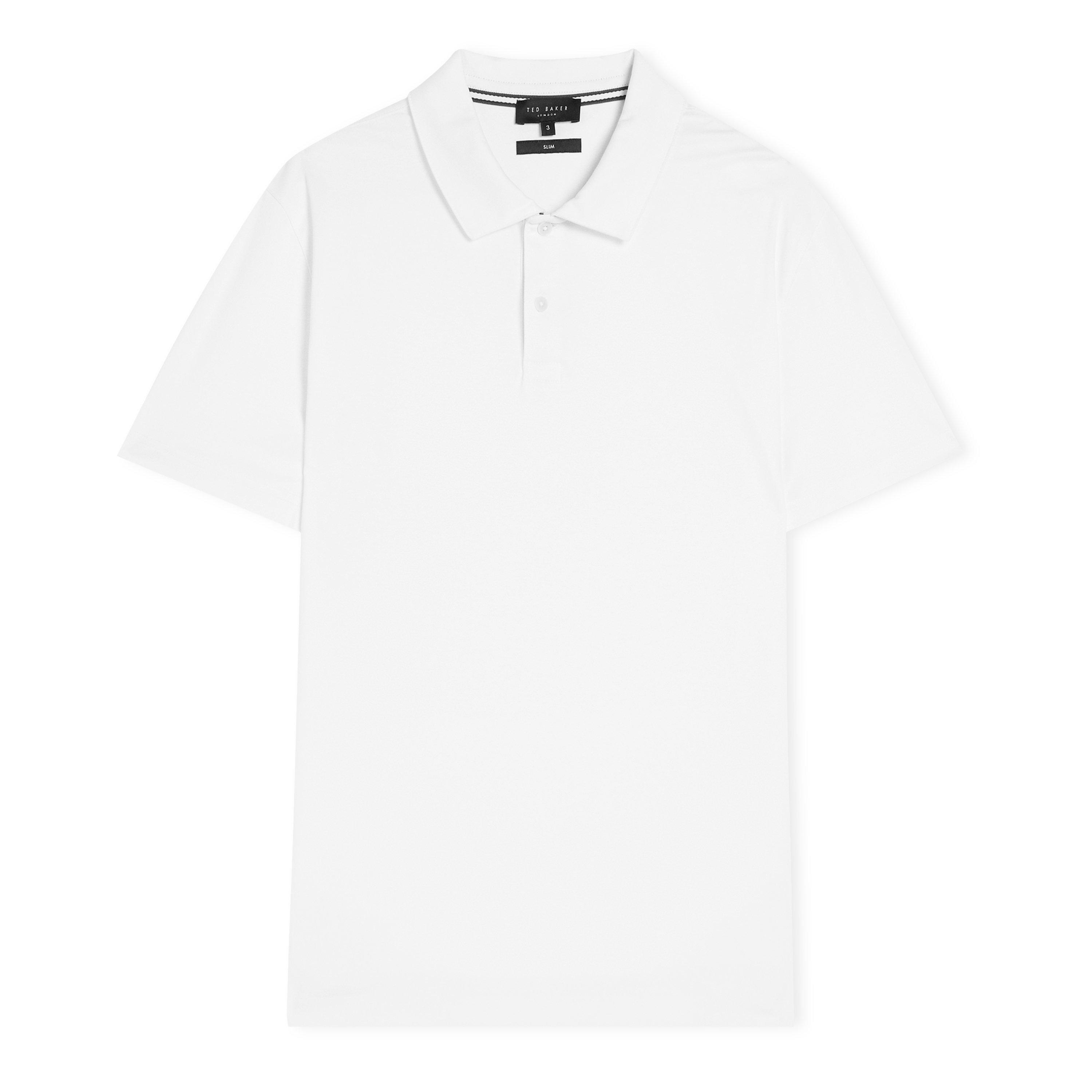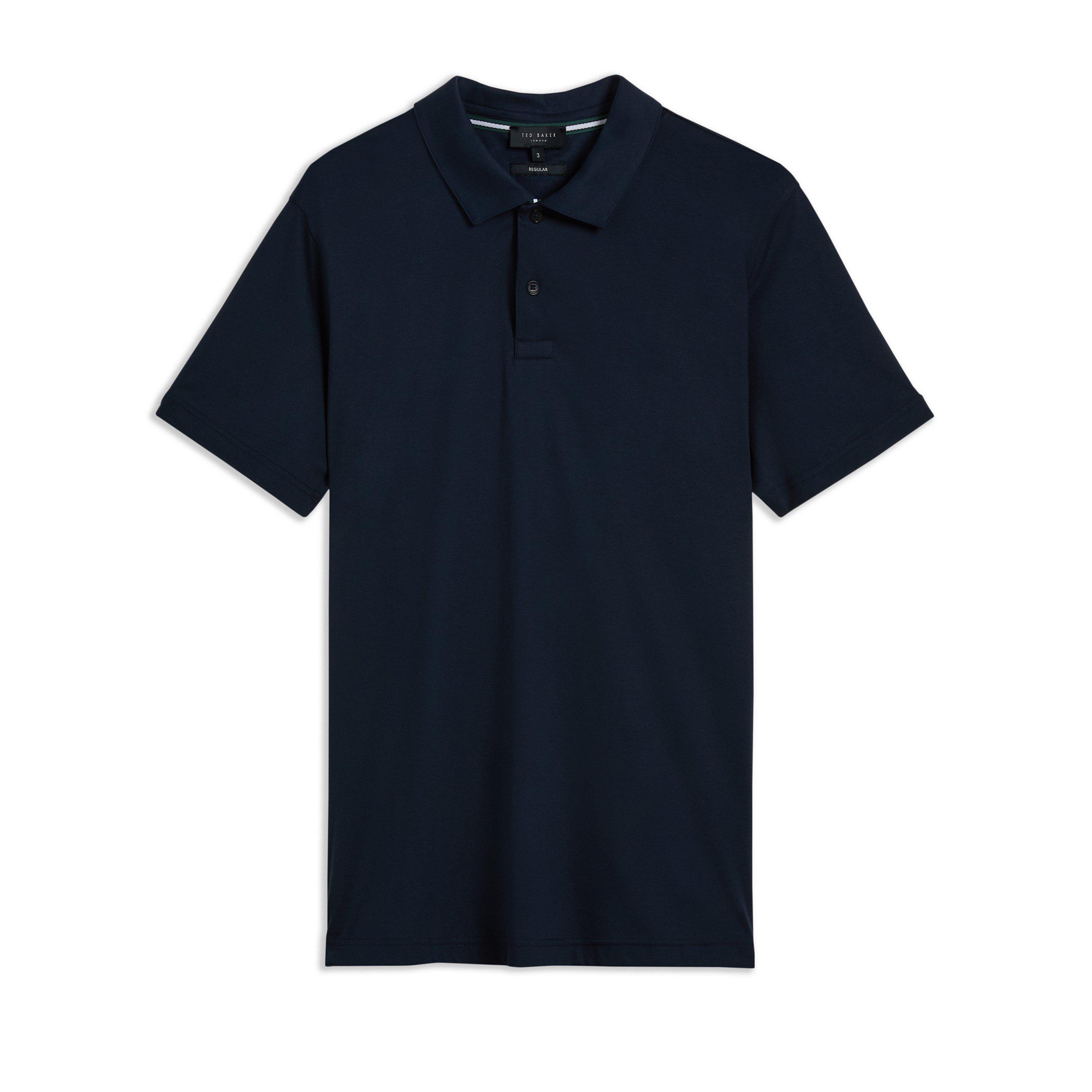 Sharp tailoring meets casual comfort in this regular-fit Zeiter polo shirt from Ted Baker. A modern wardrobe essential featuring a classic pointed collar and traditional two-button placket, enhanced with signature Ted Baker detailing through subtle stripe accents at the collar. The premium cotton construction offers a luxurious handle while maintaining its shape throughout the day.