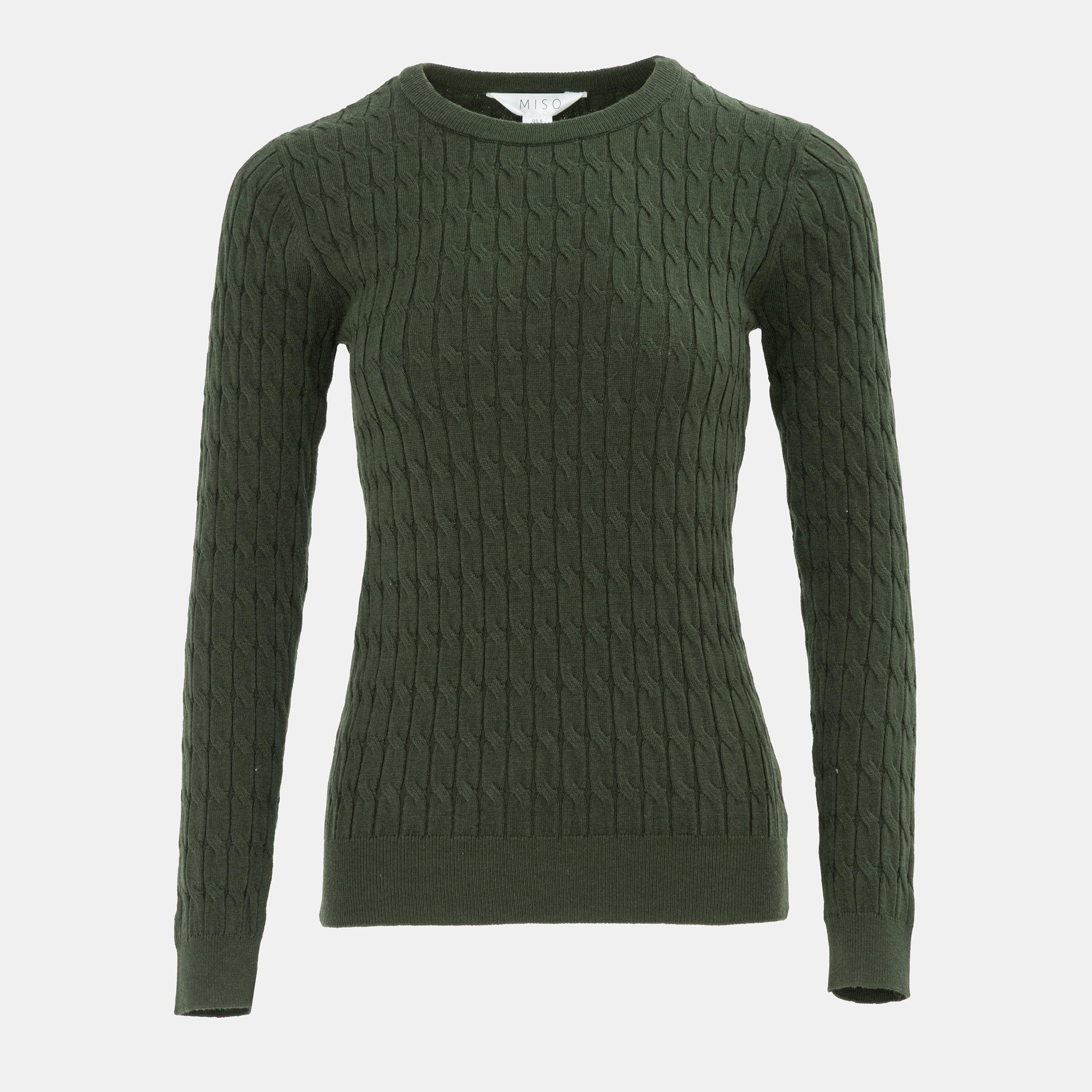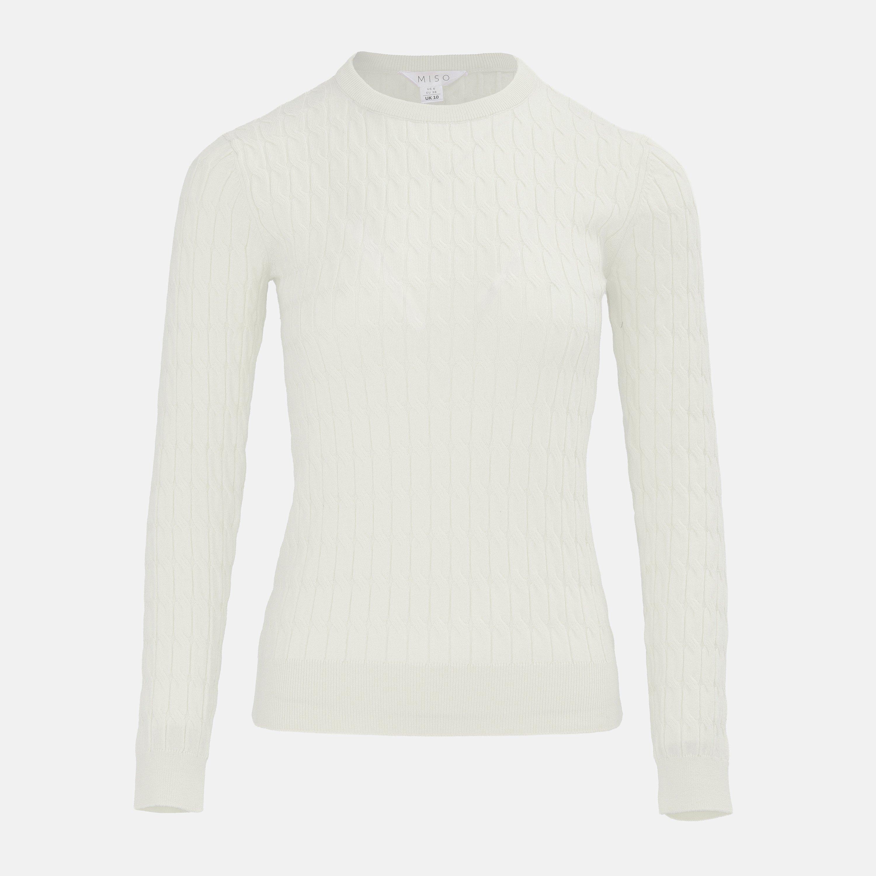 Stay cosy in this Miso Long Sleeve Crew-Neck Cable Knit Jumper. Featuring an intricate cable knit pattern and a classic crew-neck neckline, this jumper provides warmth with ribbed cuffs and trim for a comfortable wear throughout the cooler seasons.