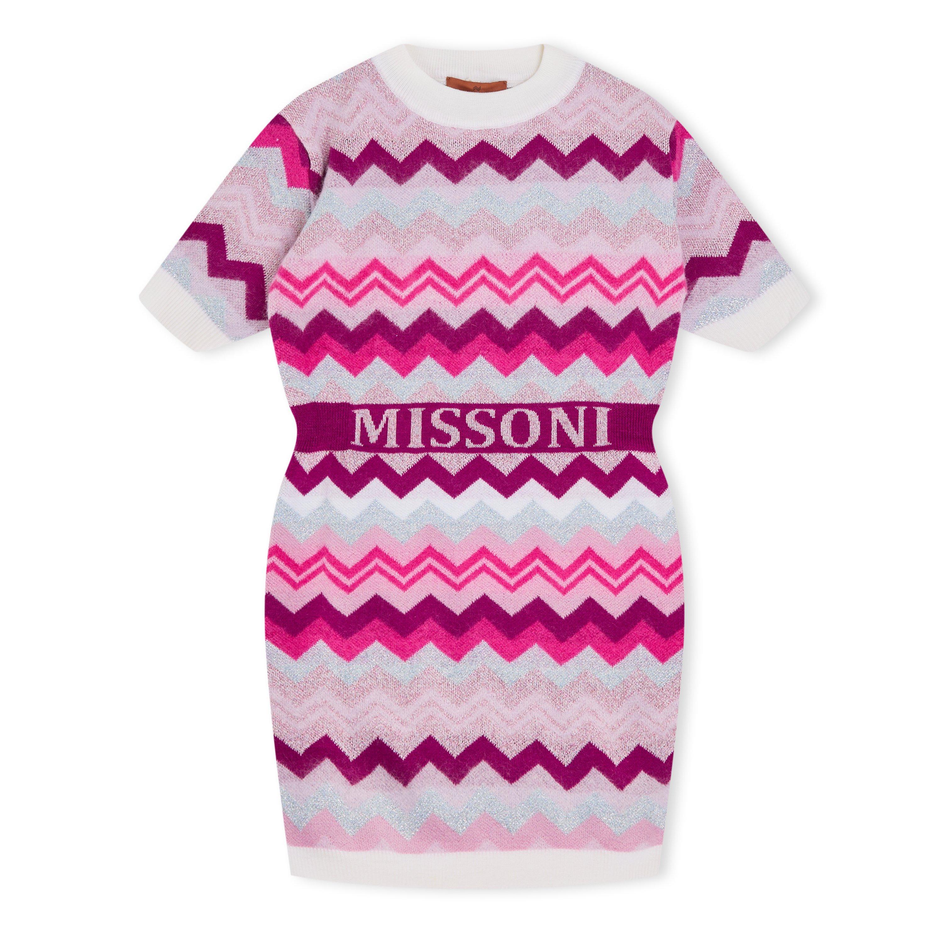 The Missoni Kids' Zig Zag Knitted Jumper Dress brings vibrant pattern work to a wearable, everyday design. This dress features the brand's vibrant zig zag motifs in a form designed for regular wear.