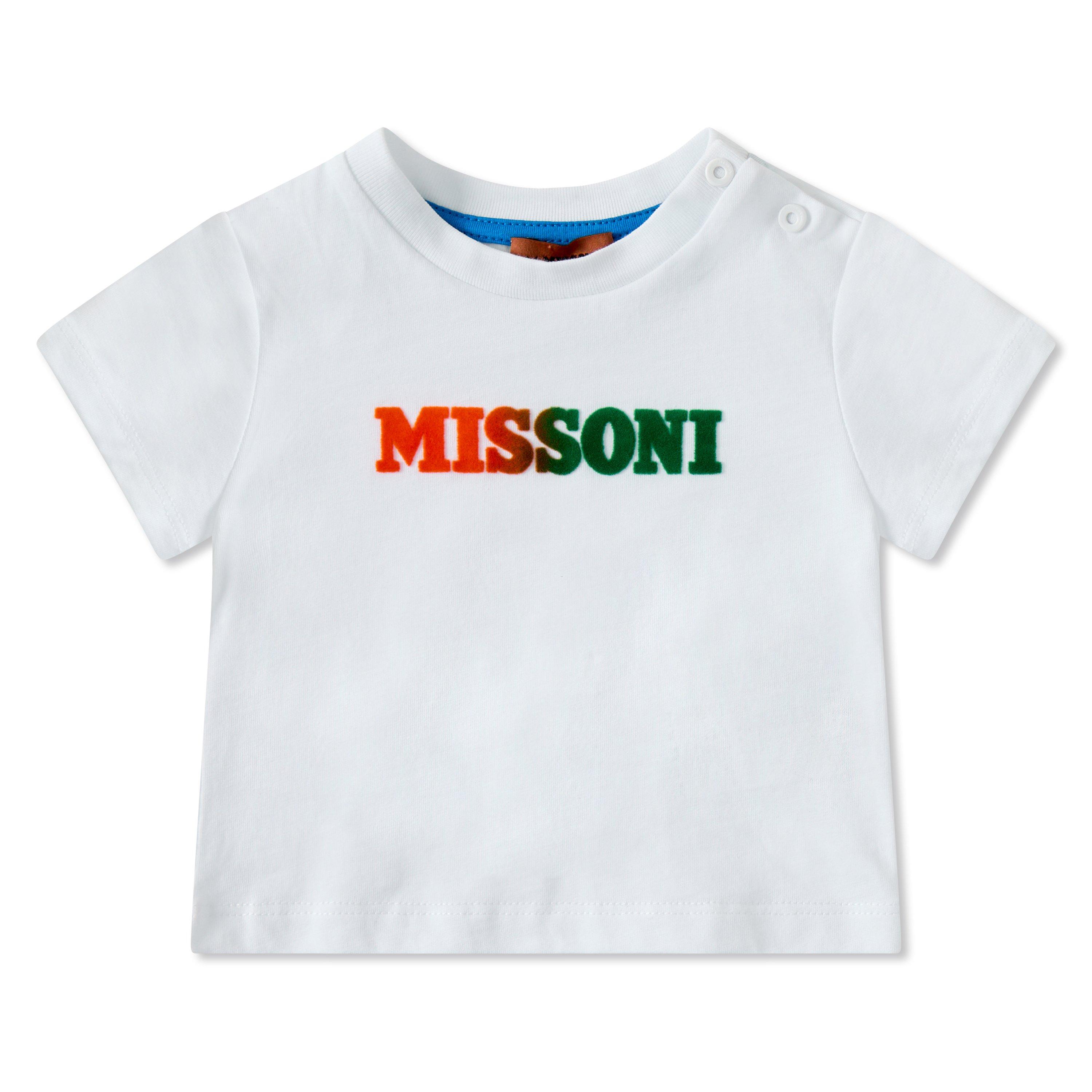 Missoni's Kids' Logo Print Regular Fit T-Shirt delivers Italian style for young fashion enthusiasts. The comfortable regular fit design features the Missoni logo prominently displayed across the front.