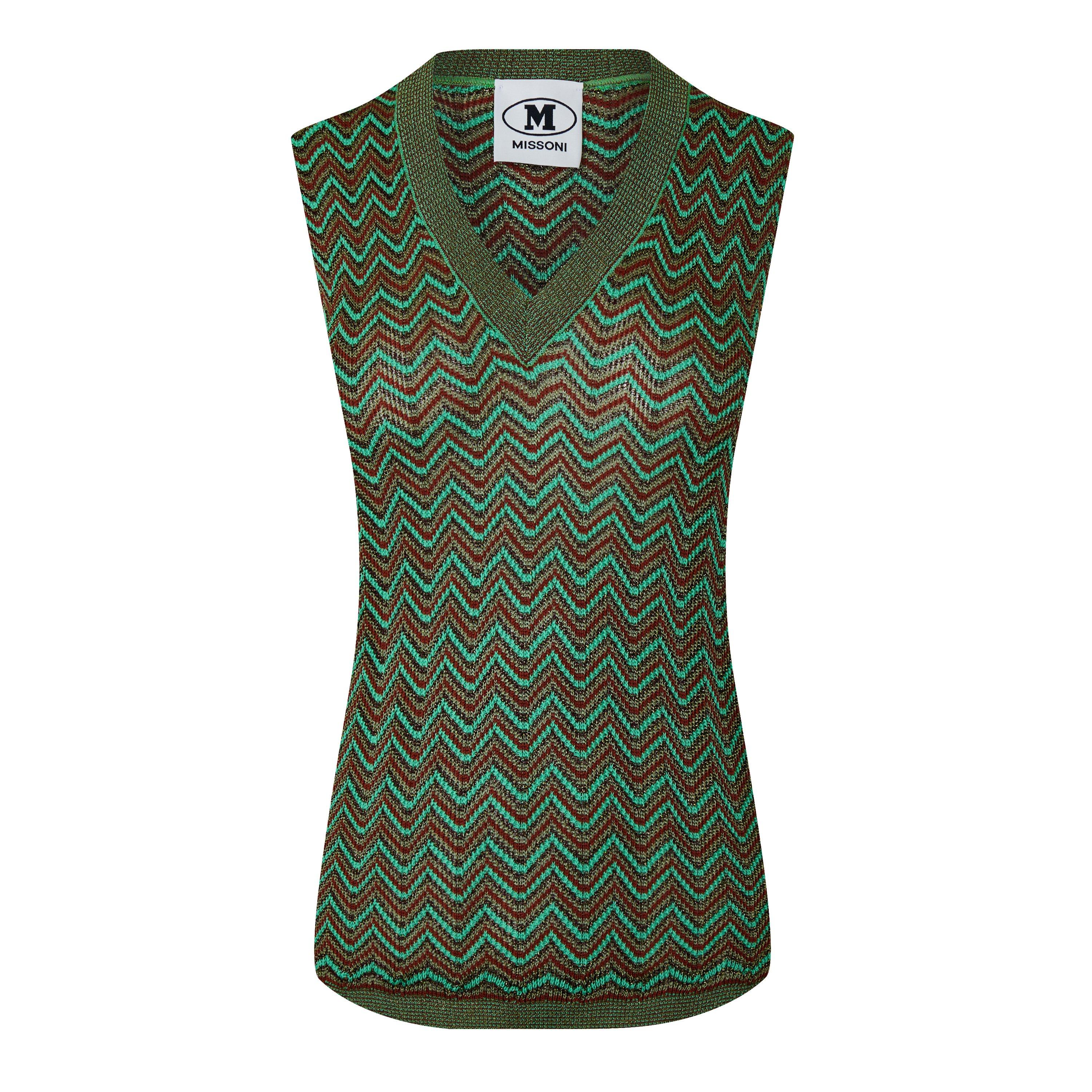 The Missoni Zig Zag Knitted Tank Vest delivers striking pattern work with a sleeveless design that pairs with ease or stands alone for warmer days.