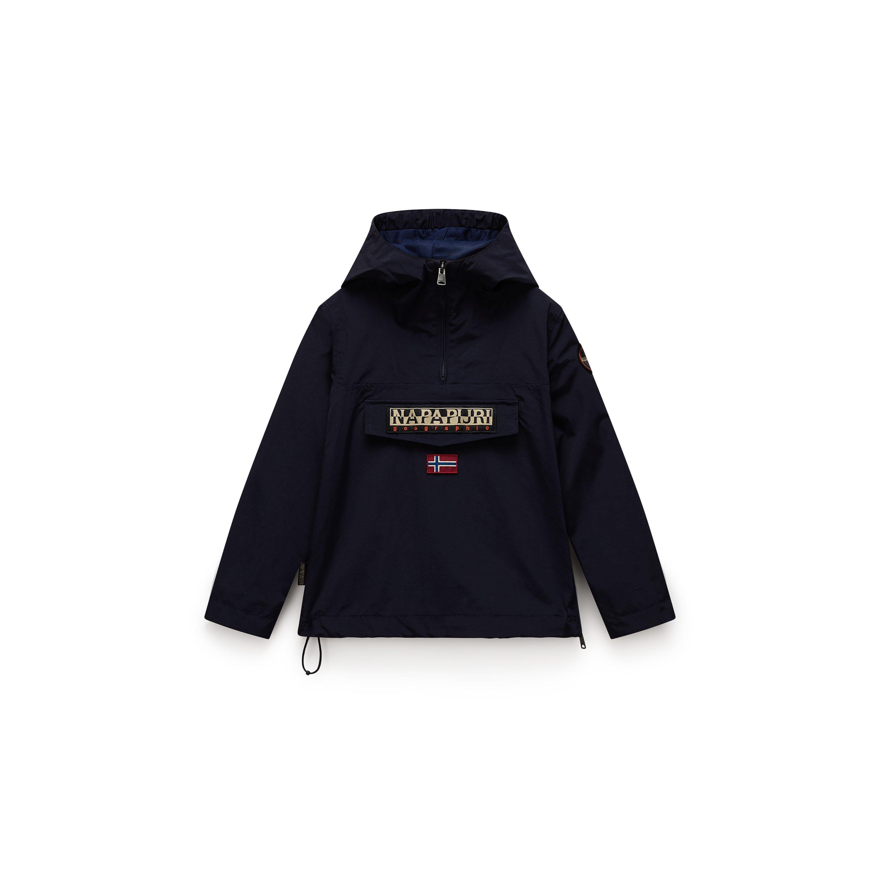 Napapijri's Kids' Rainforest Stormy Weather Anorak offers practical protection with adventure-ready style. This pullover jacket shields active children from the elements with its weather-resistant fabric, while the outdoor aesthetic ensures they look great during all their explorations.